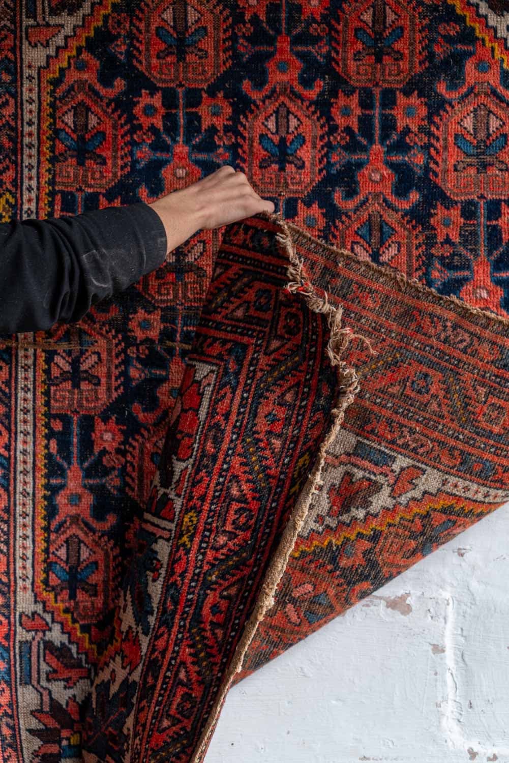 A sizeable Hamadan prayer rug from the 1940s, with vibrant colours.