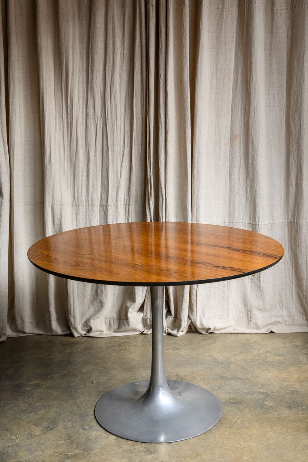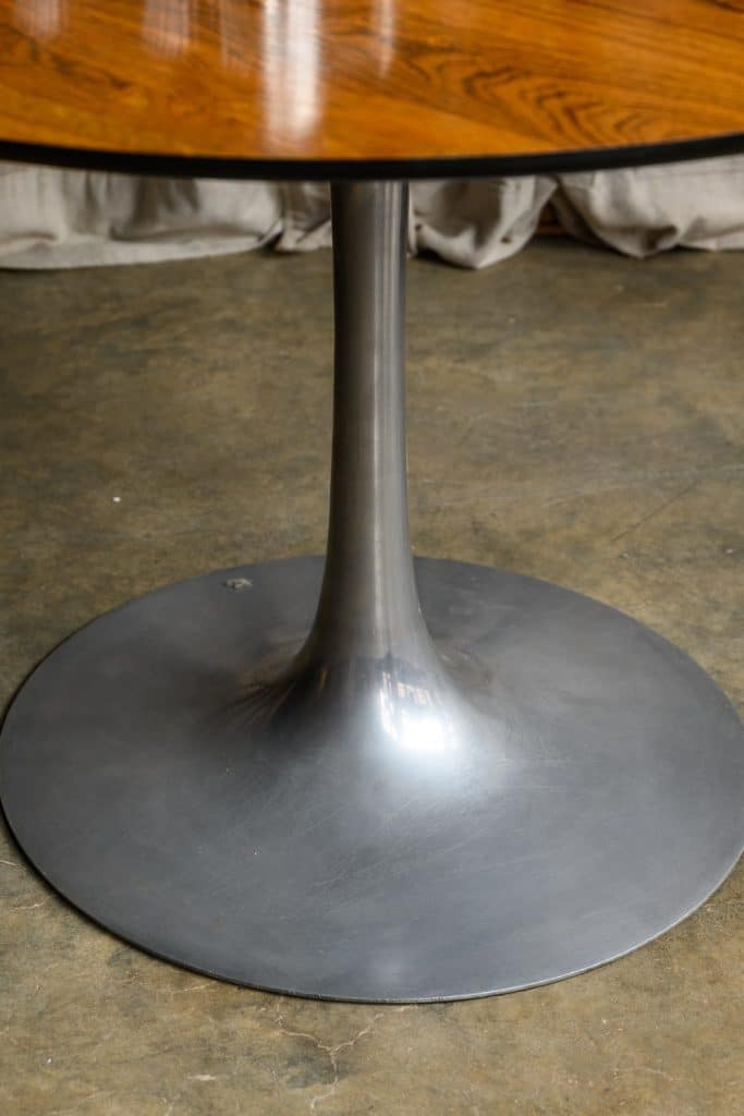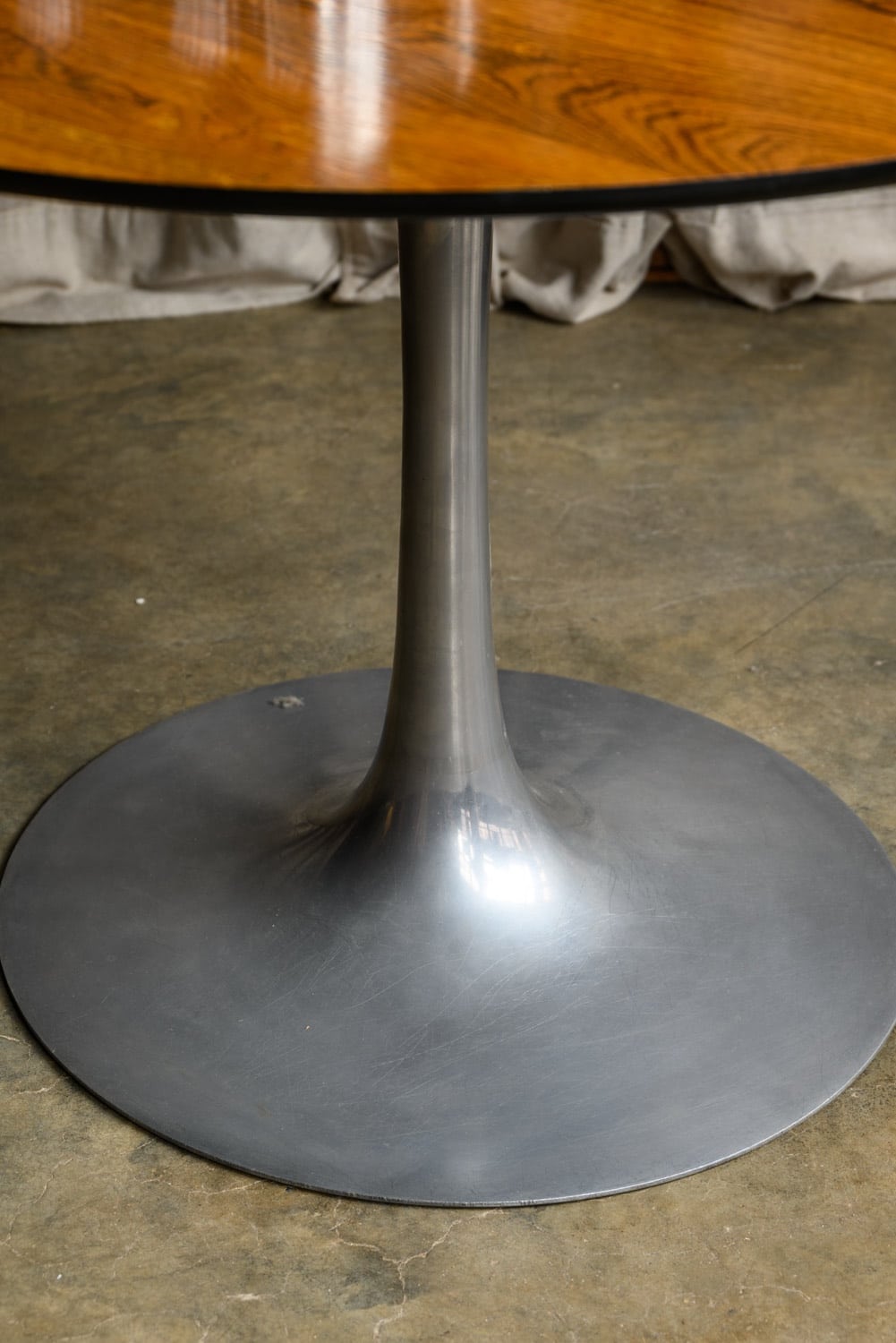 Particularly lovely Arkana table, c.1960s. Spun aluminium base with cast iron stamped weight at the bottom.