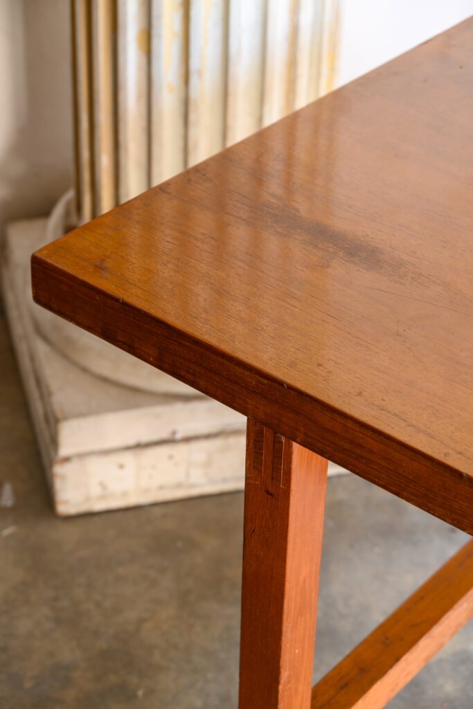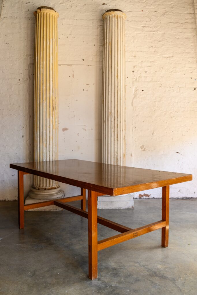 Midcentury Staverton table salvaged from a municipal building.