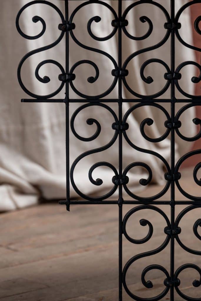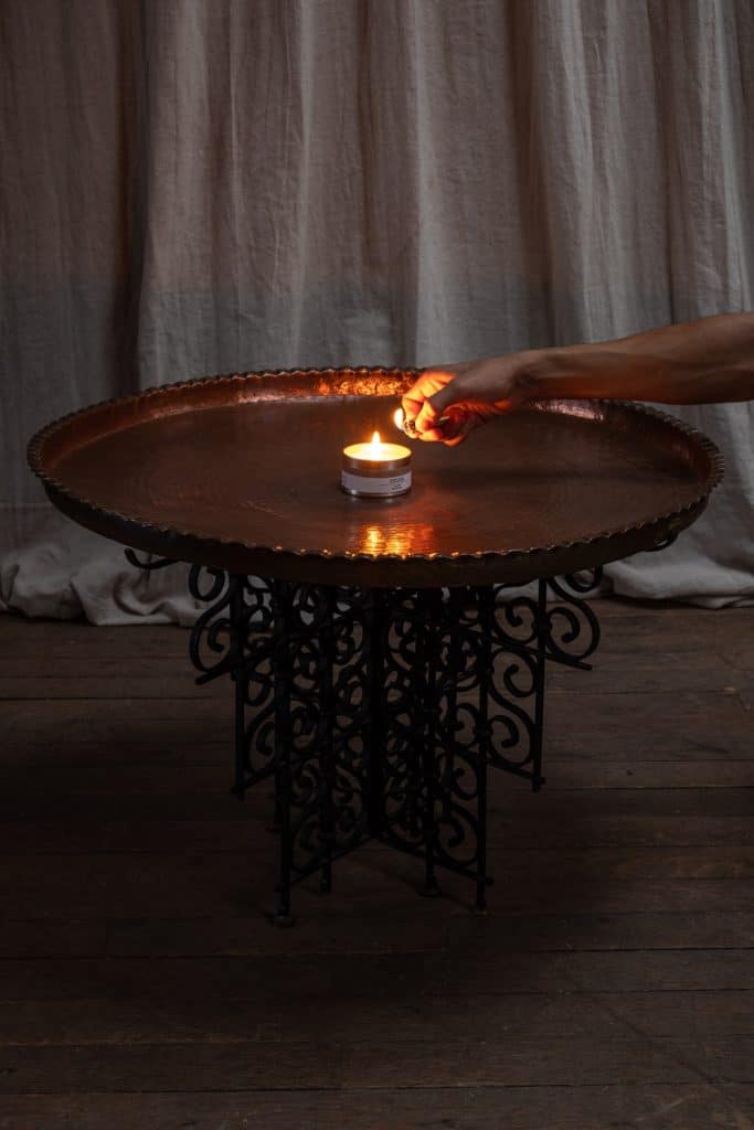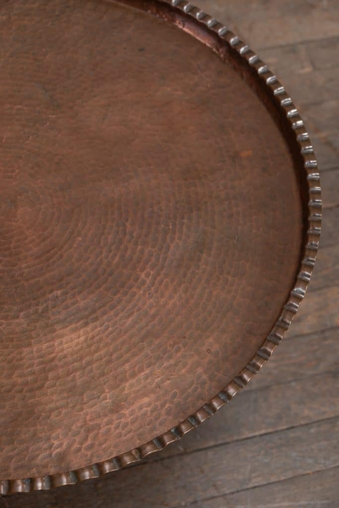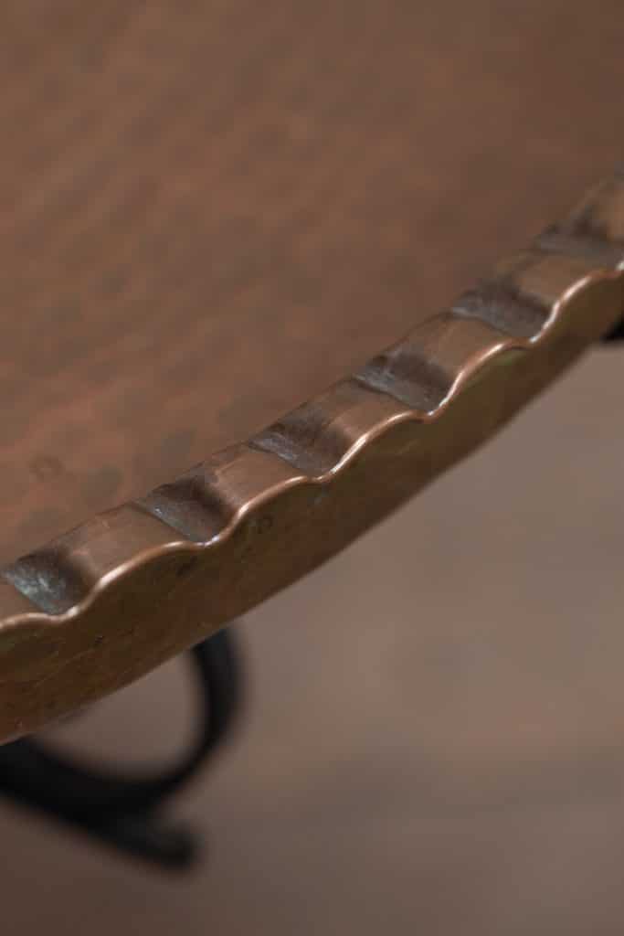 Brass tray table on iron stand.