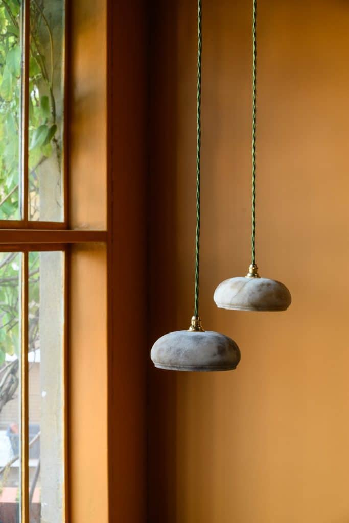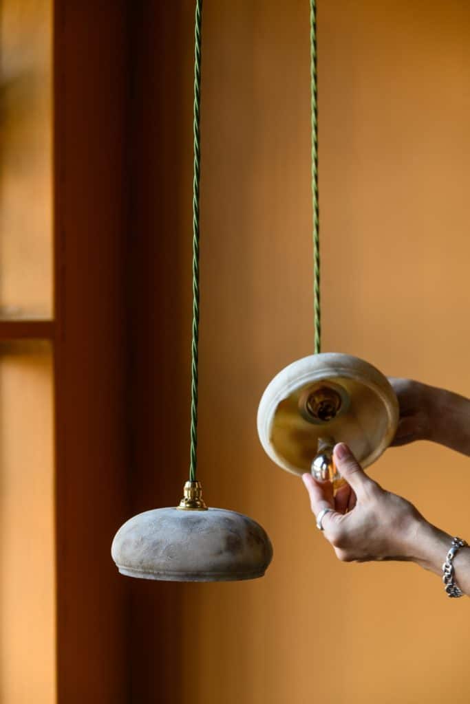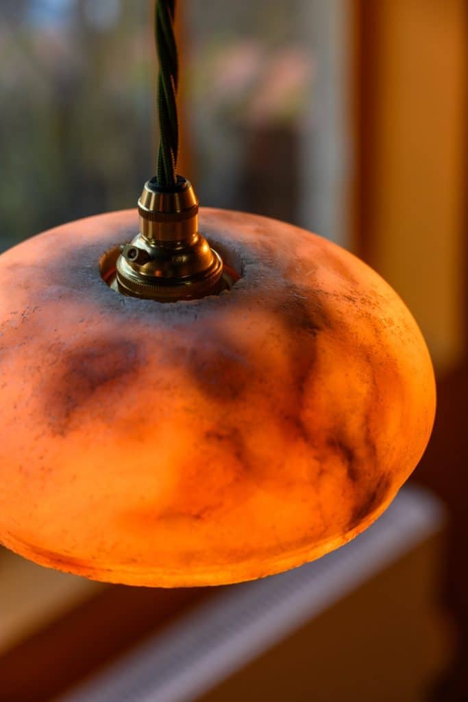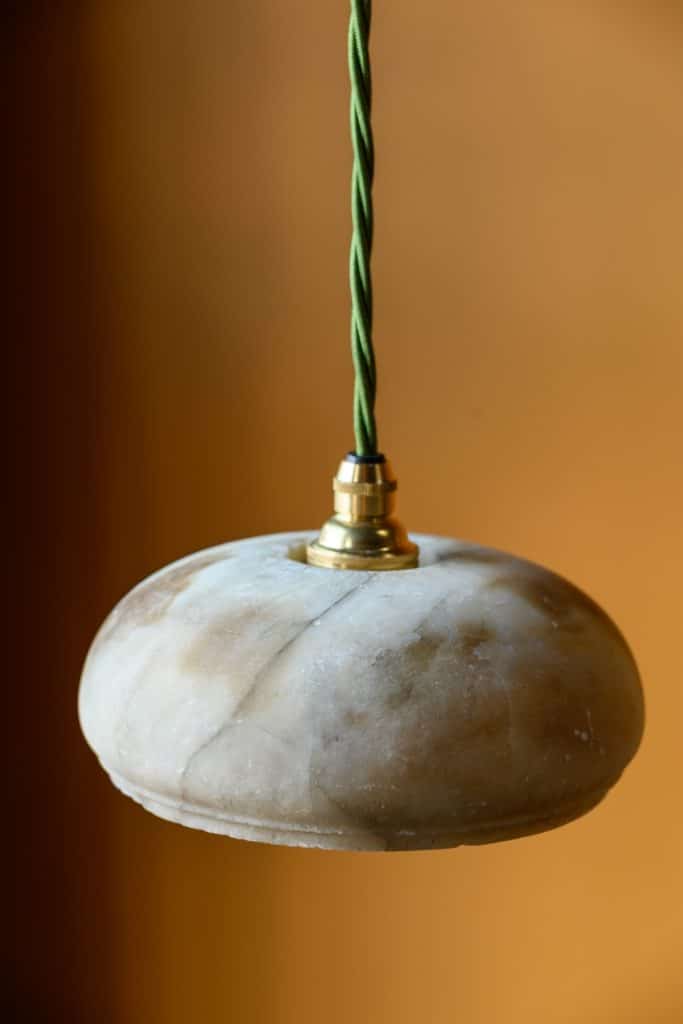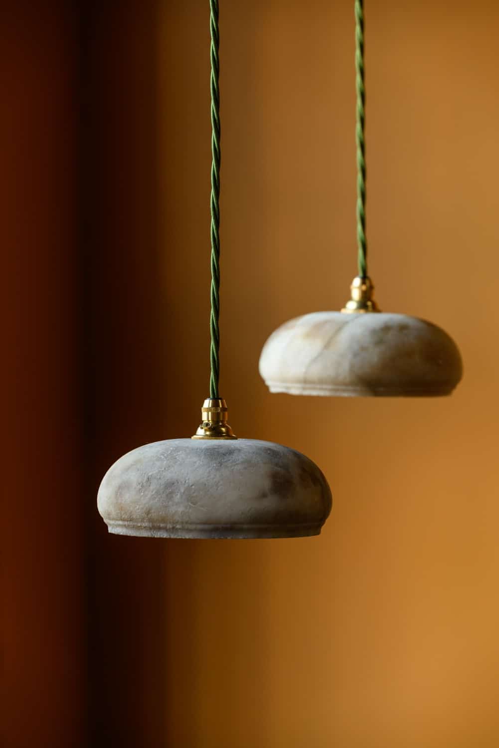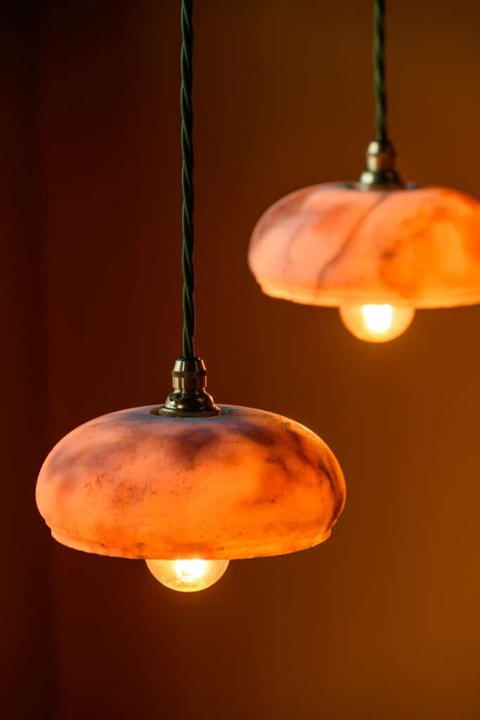 Early 20th century alabaster pendants, in simple domed shape.