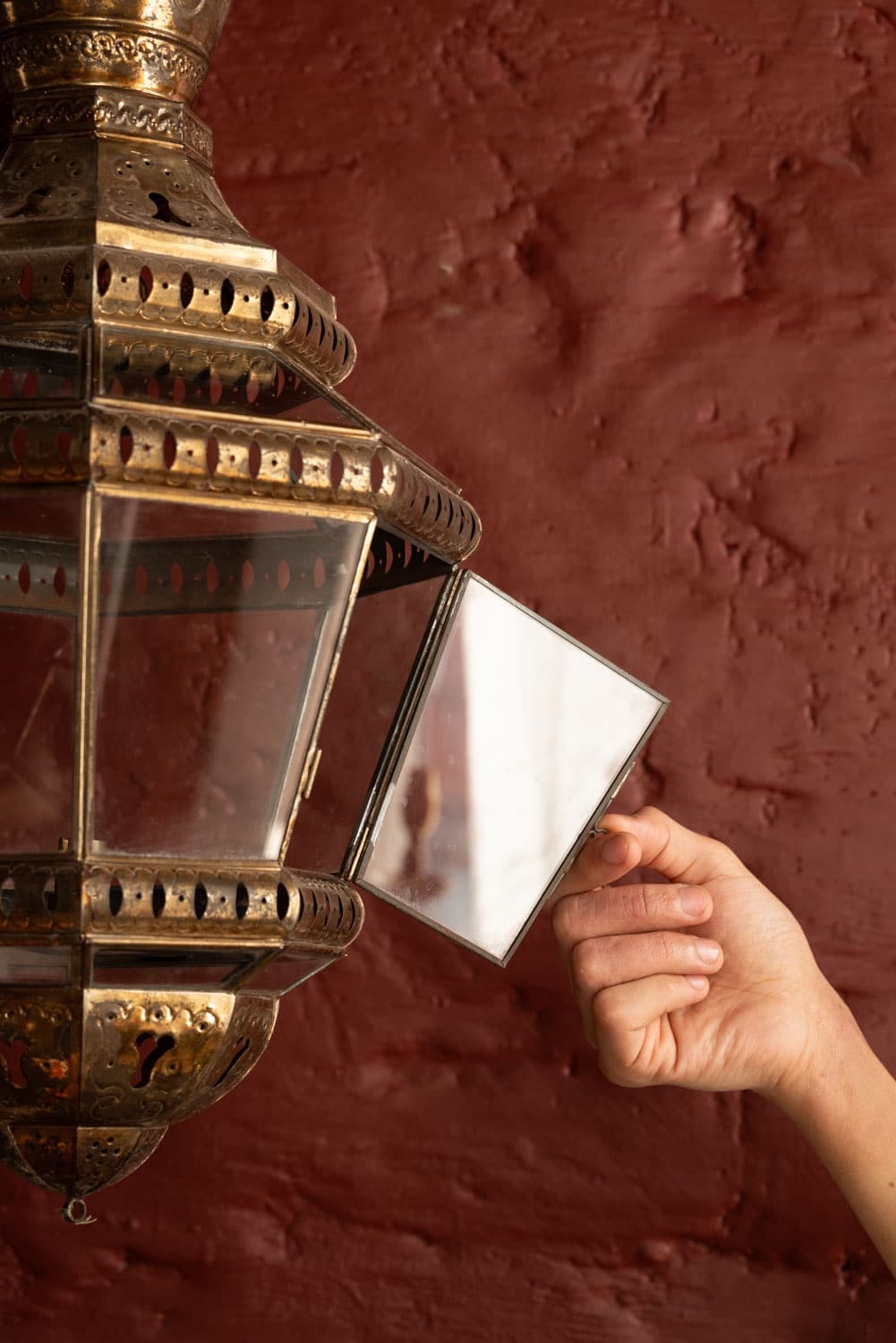 Brass and Glass 'Alhambra' lantern by Vaughan Designs, inspired by Moorish lanterns.