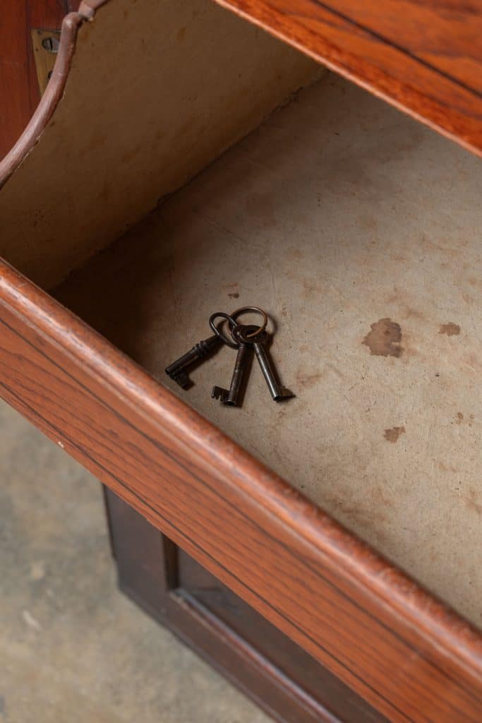 Internal brass sliding locks all in good working condition, and a set of three keys.