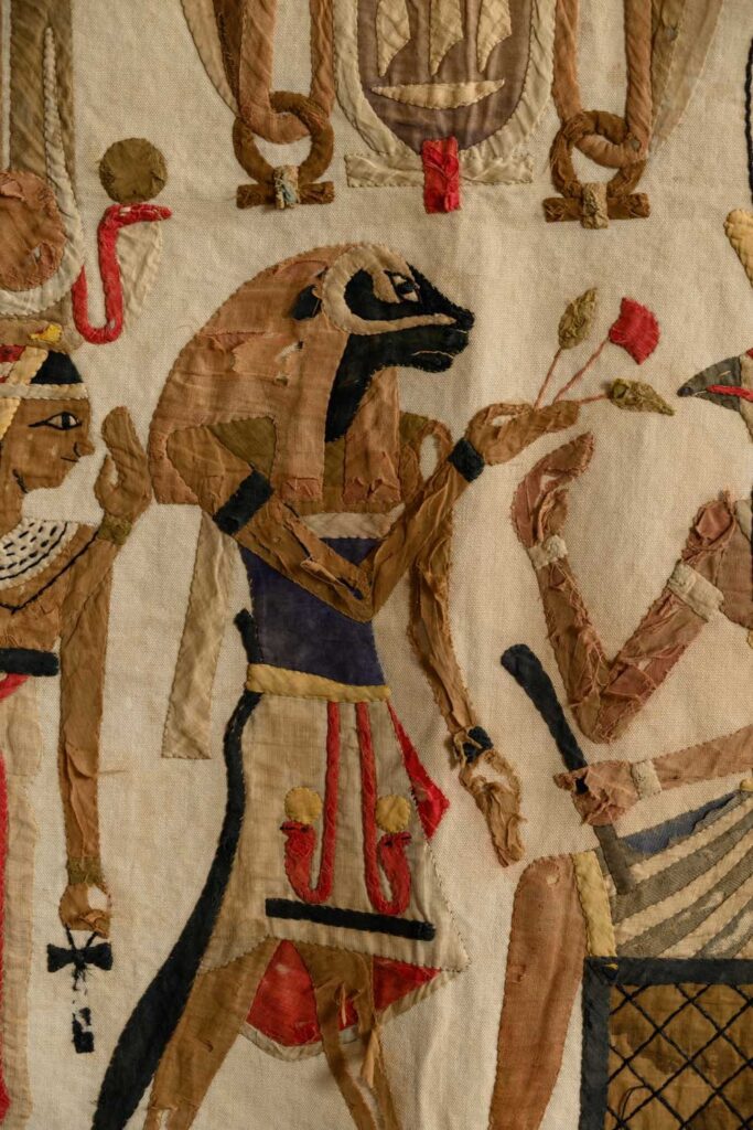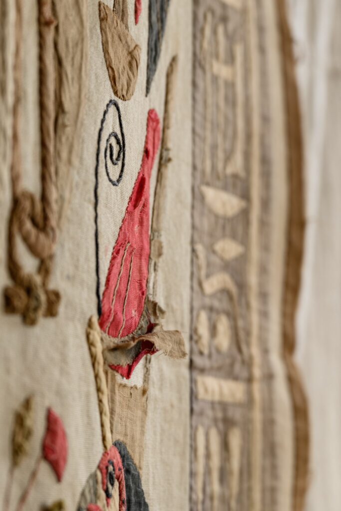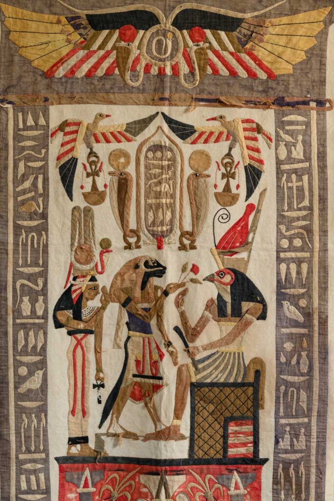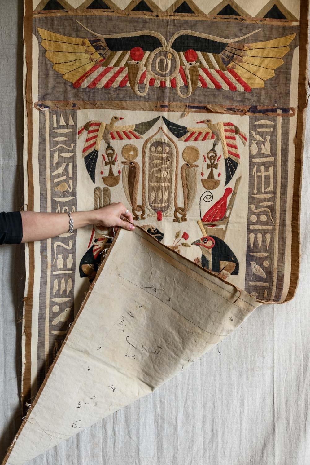 Probably produced in Egypt in the early 20th century as a souvenir for visiting tourists, this panel contains a high density of ancient Egyptian motifs to appeal to the international visitor.
