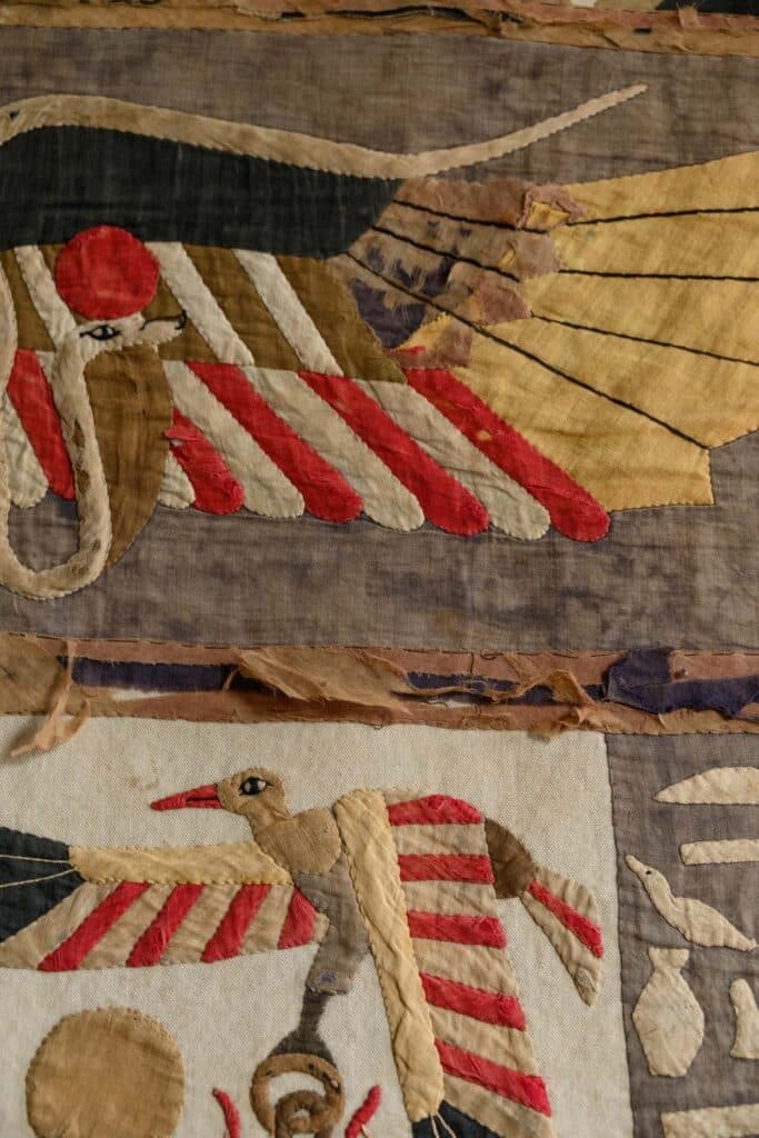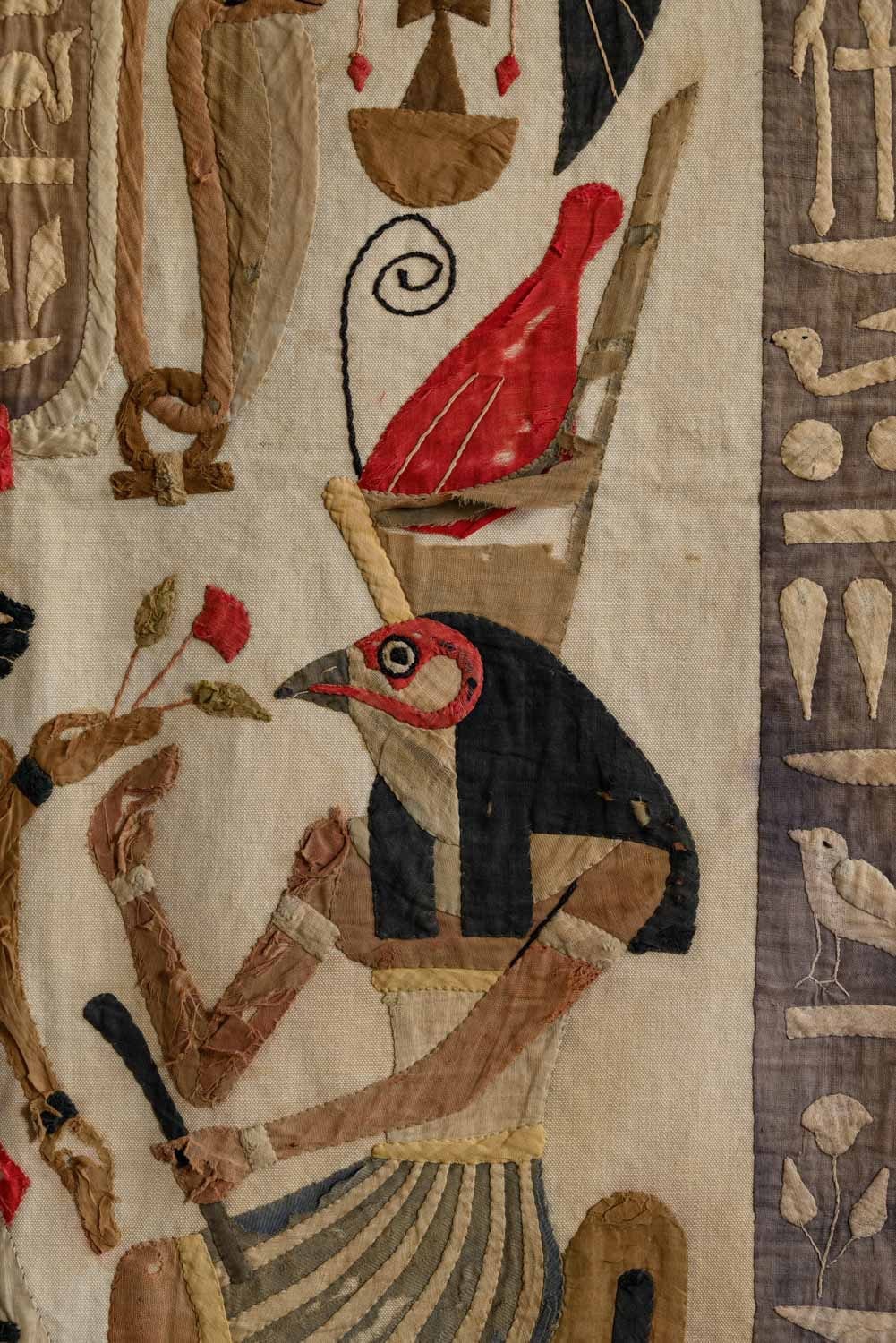 Early 20th century appliqué fabric panel in wonderful faded colours.