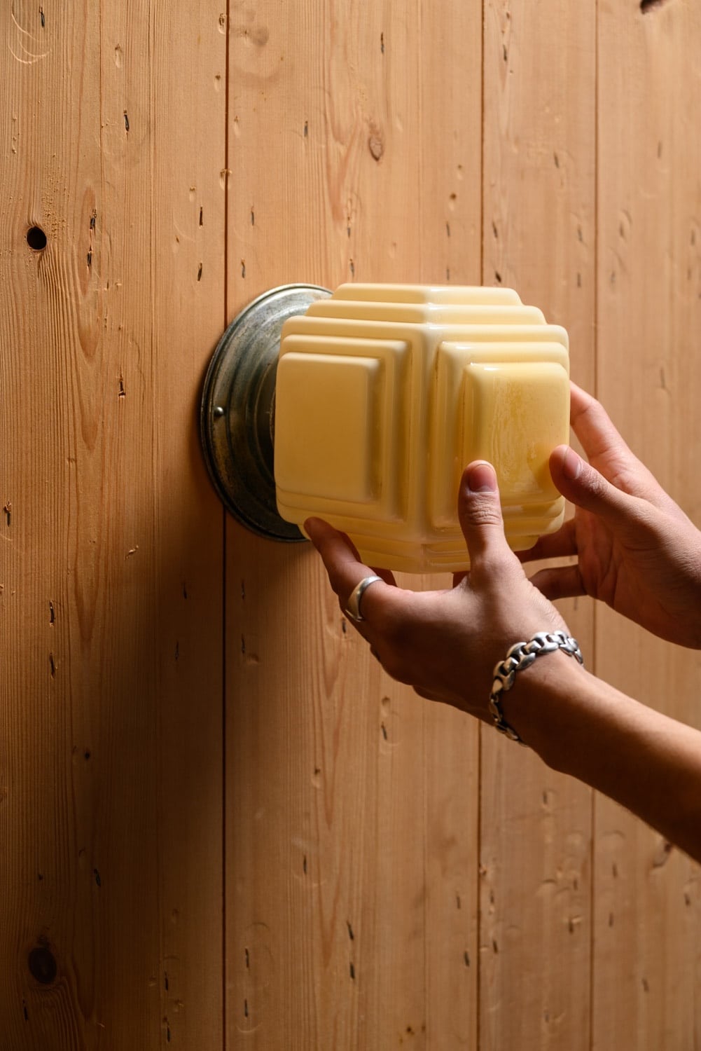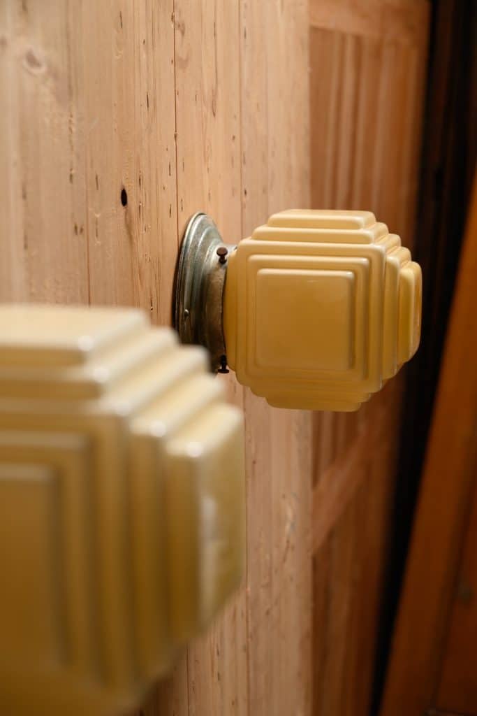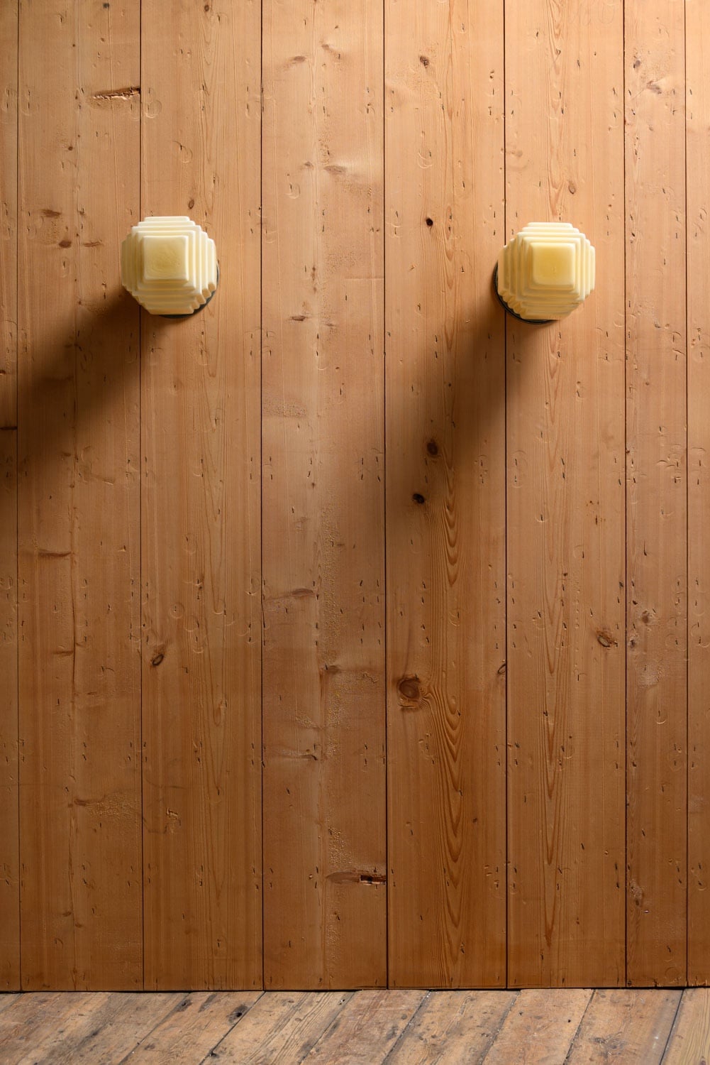 Very rare antique Art Deco stepped cube lights, with original fittings. Can be mounted on ceiling or wall.