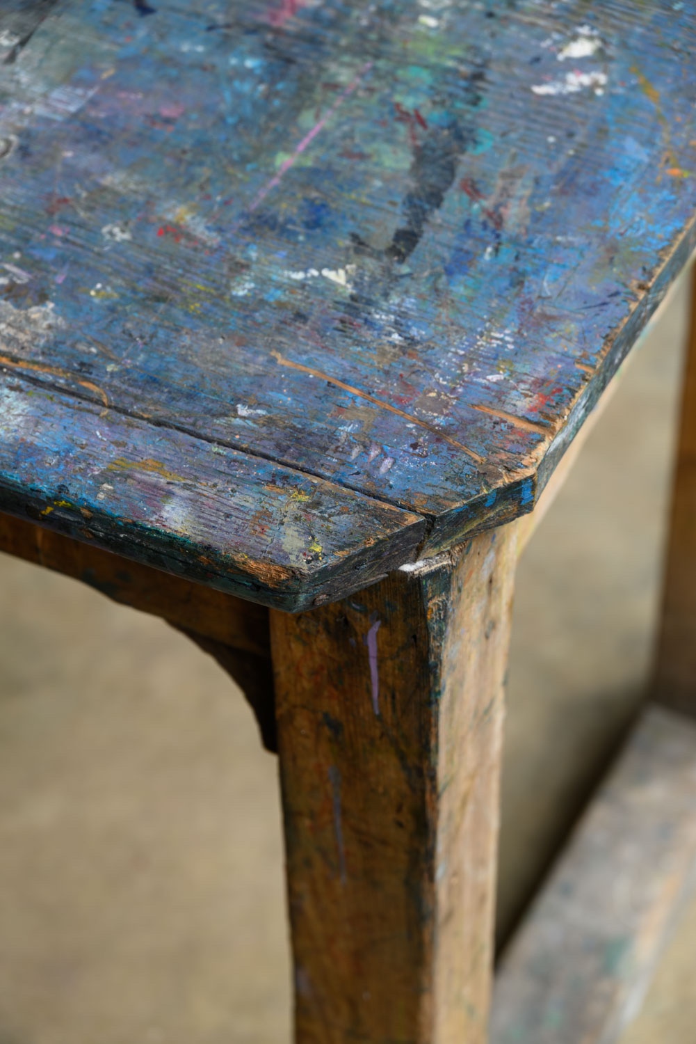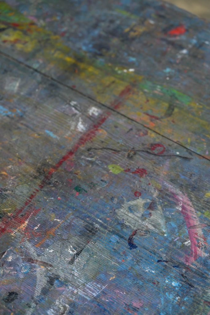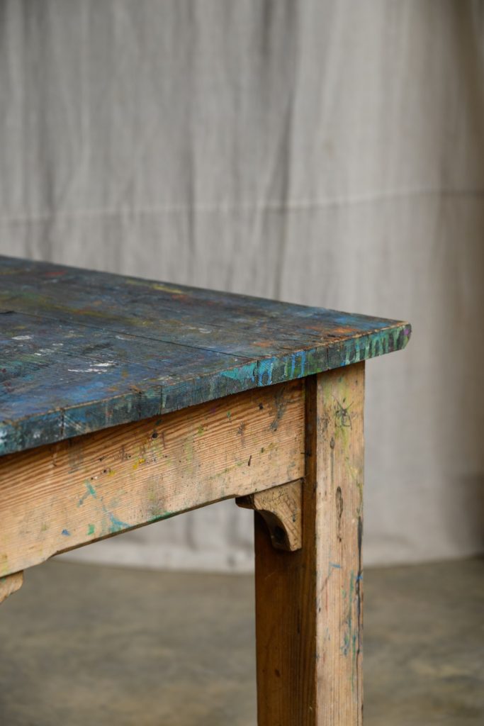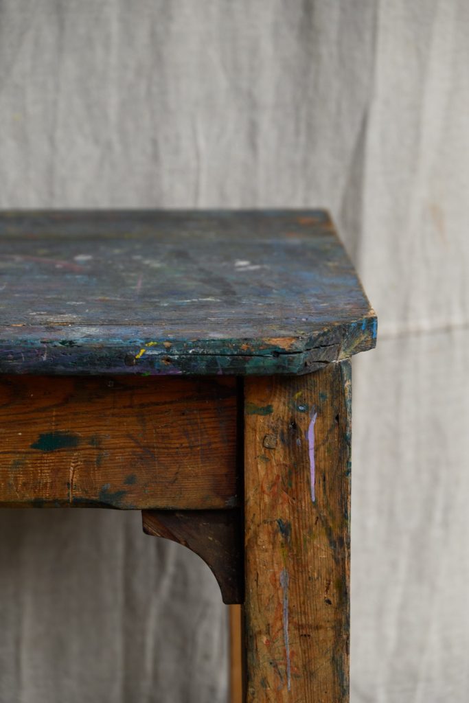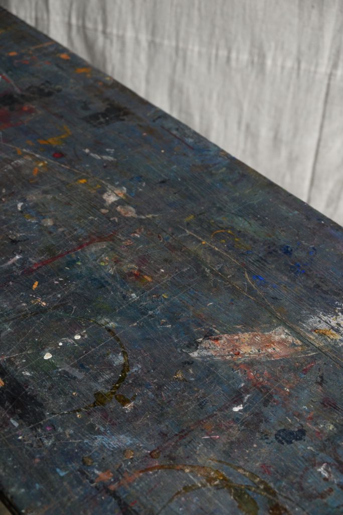 A well-used artist’s work table, 20th century.