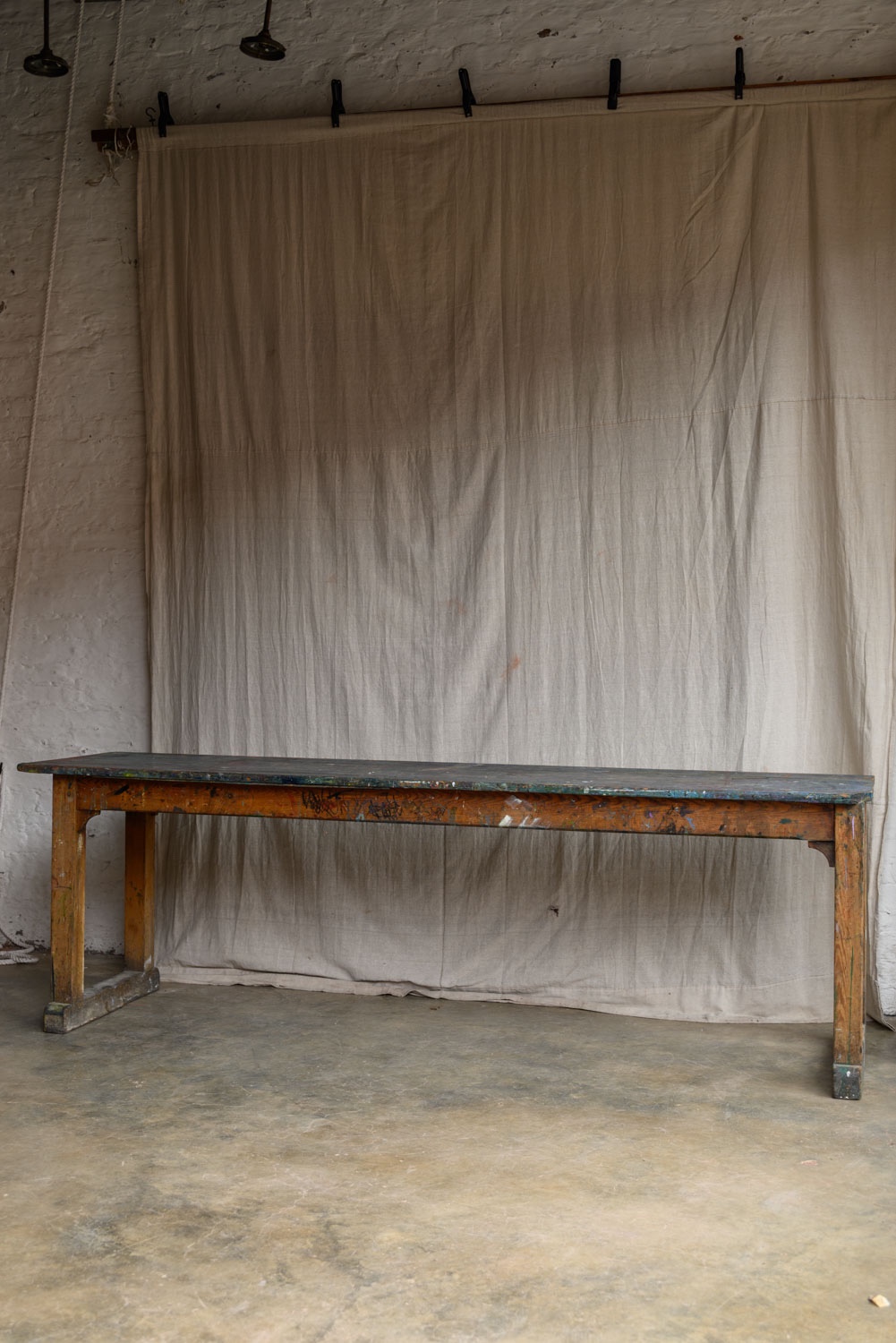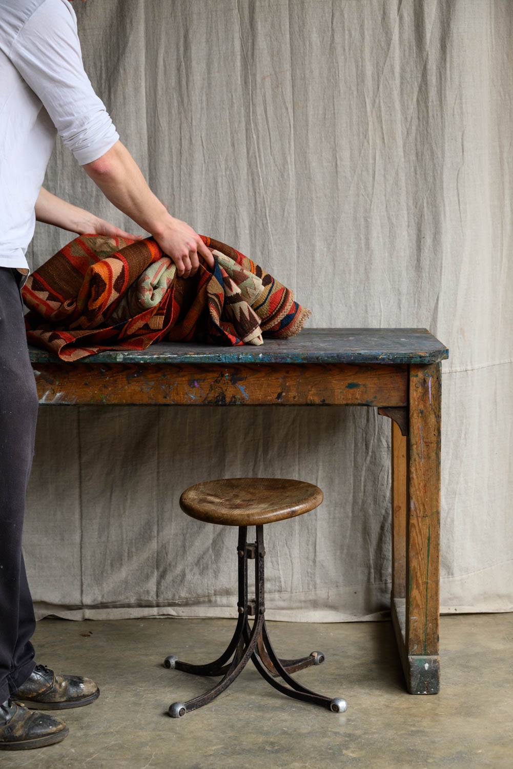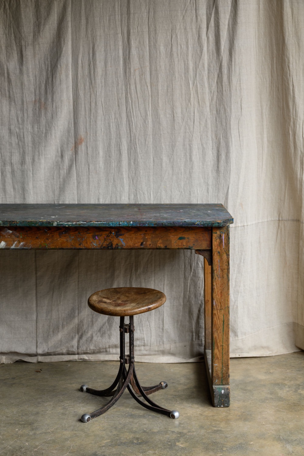 A well-used artist’s work table, 20th century.