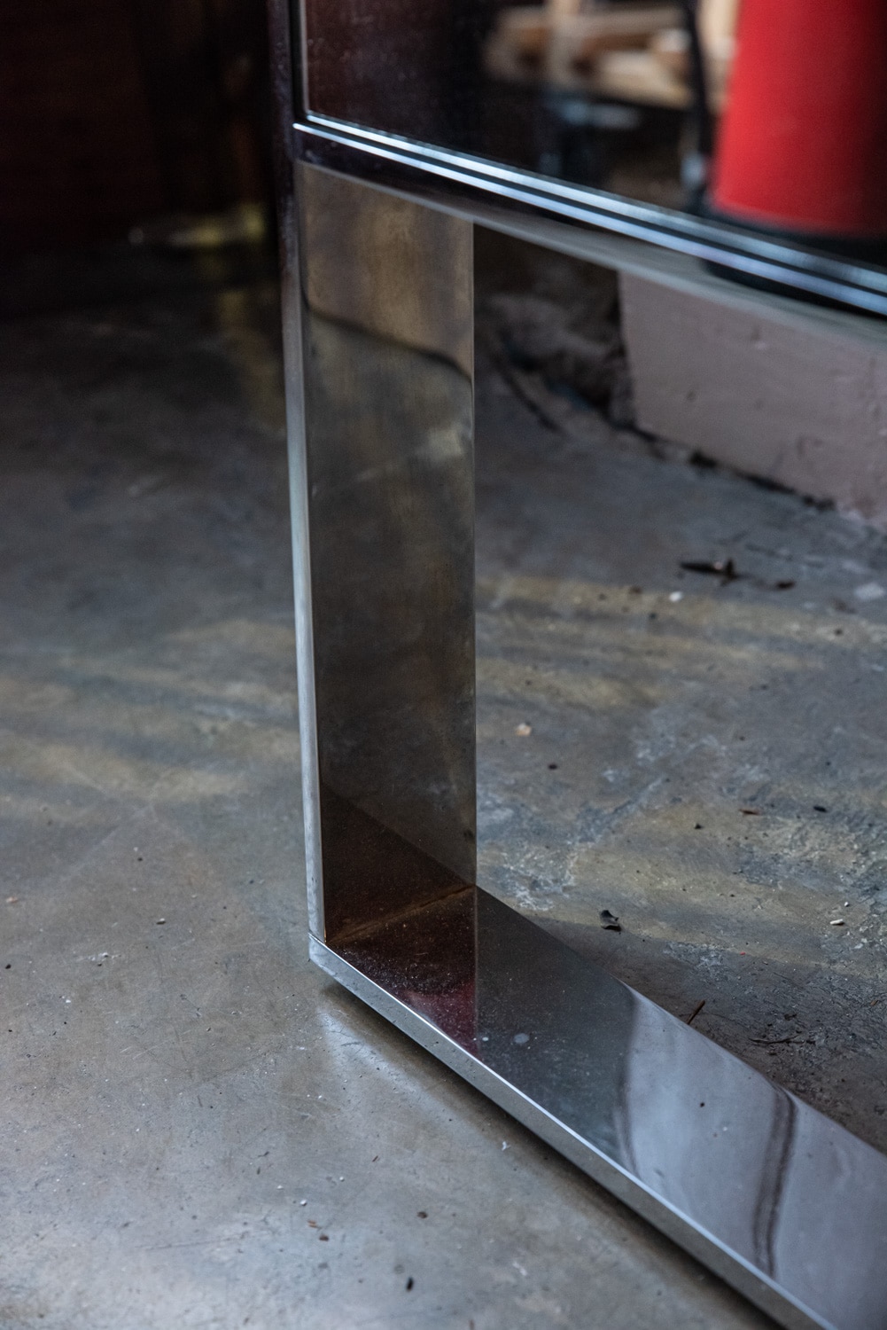 The Maxalto Psiche mirror designed by Antonio Citterio for B&B Italia, a modern and stylish piece. The upper part of the mirror is contoured at the back to enable it to lean neatly against a wall.