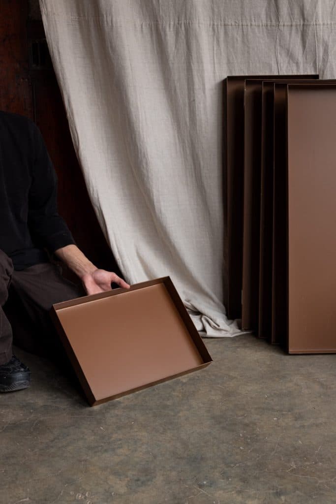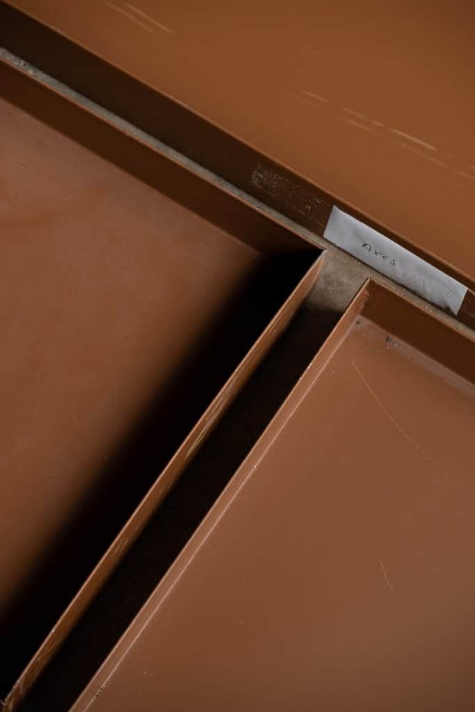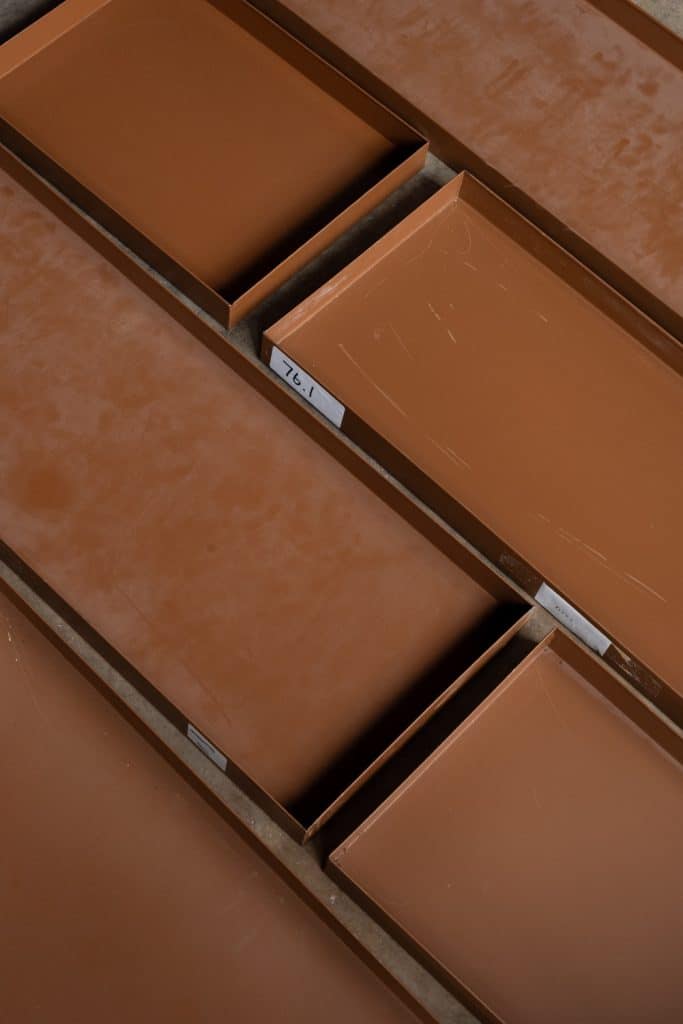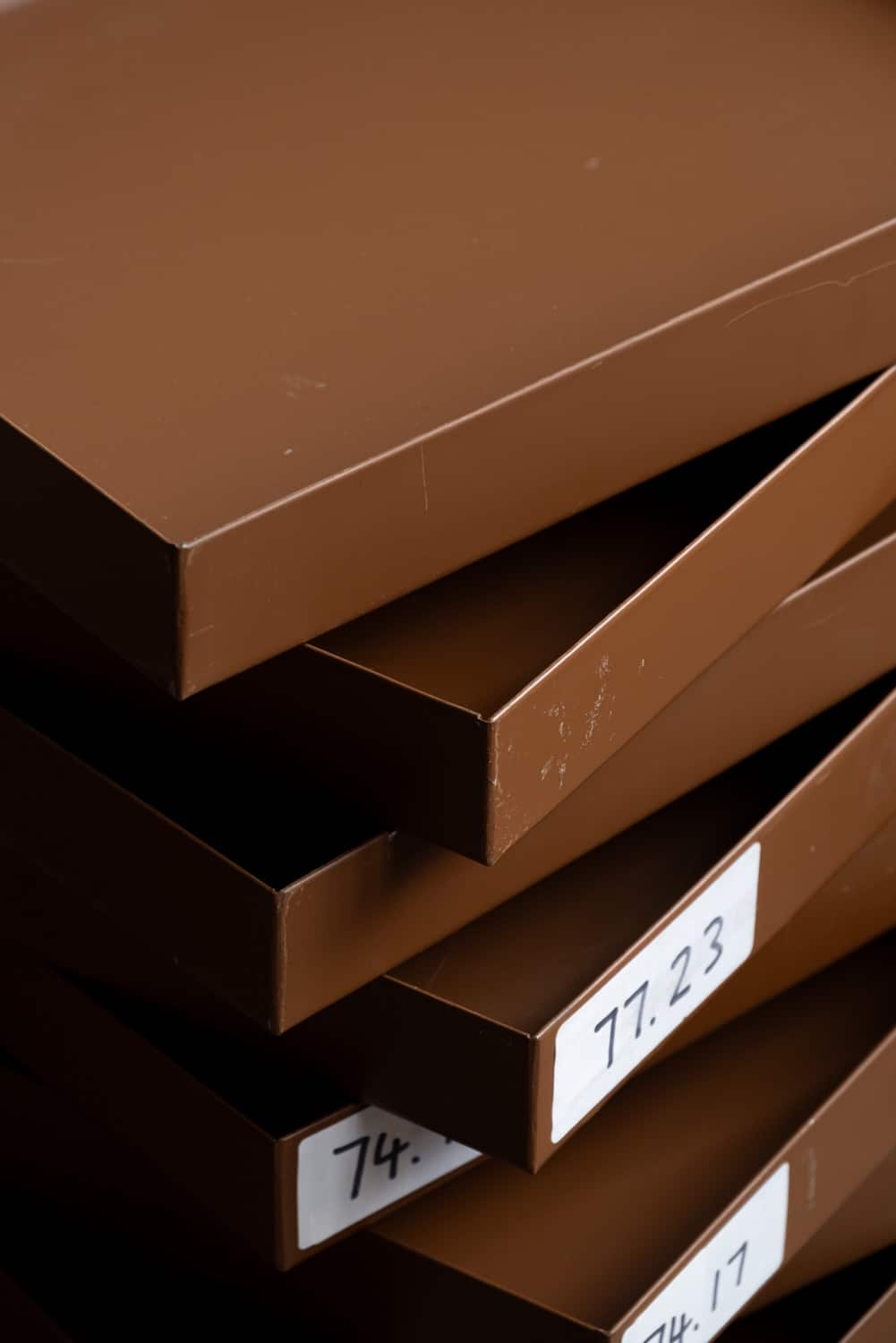 Brown metal specimen trays, from a prominent London archive store.