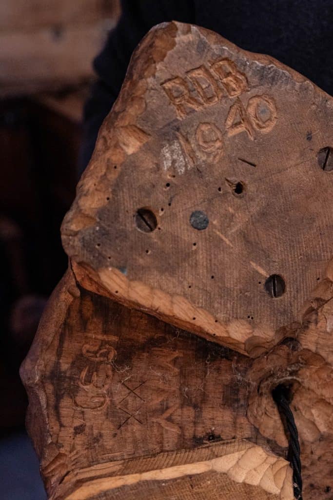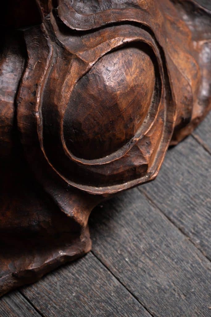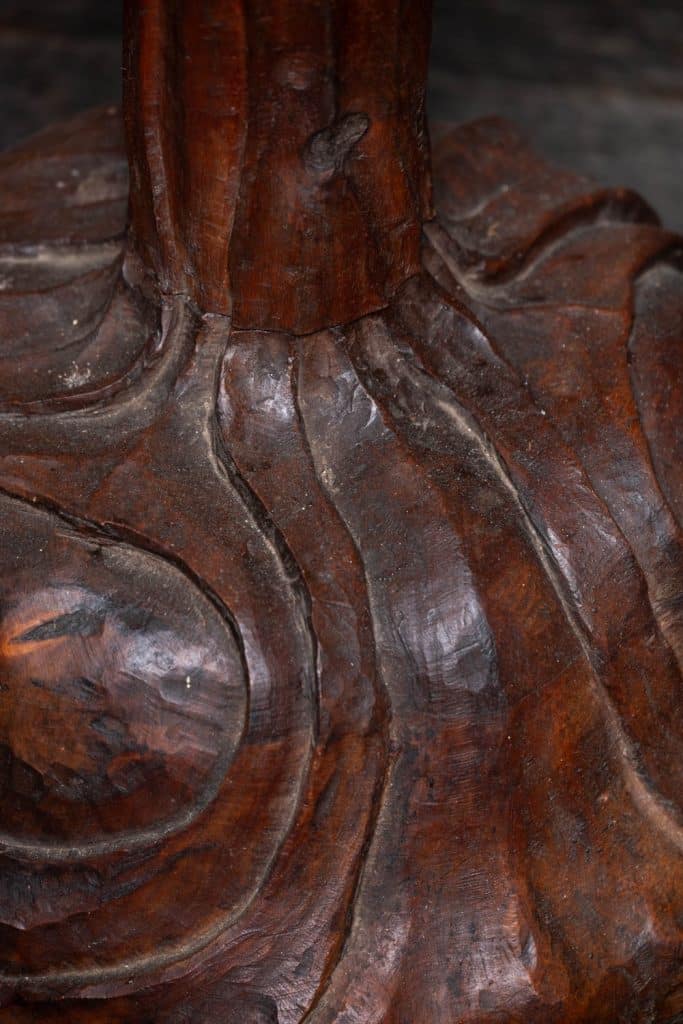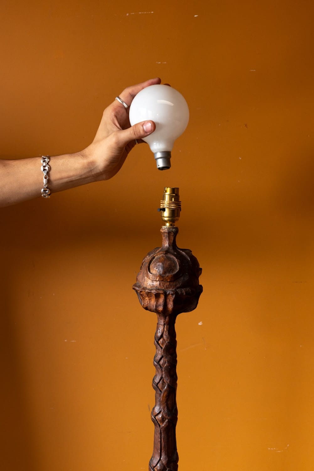 Excellent and unusual hand-carved standing lamp, initialed and dated 1939 & 1940 to base.