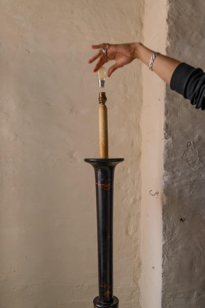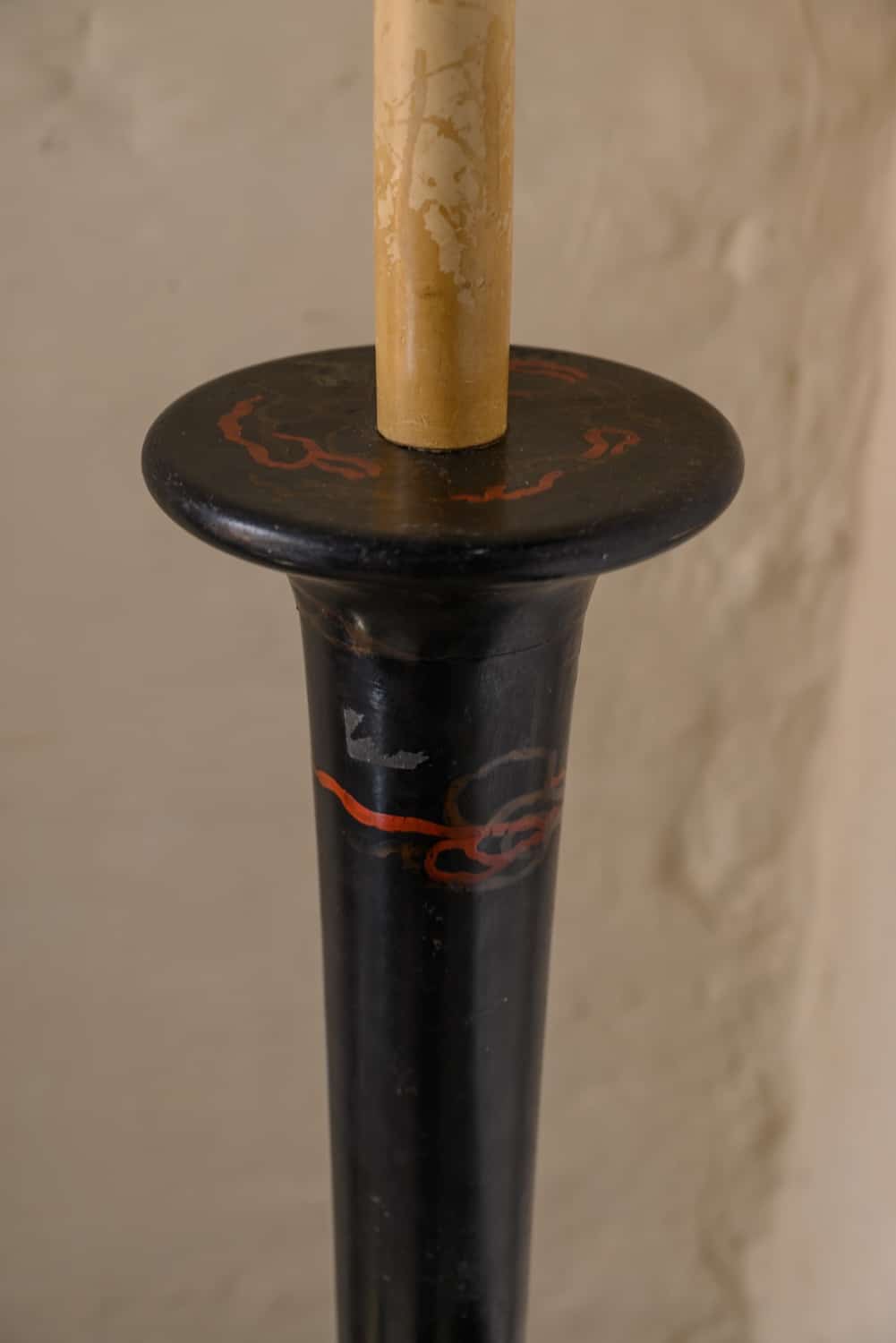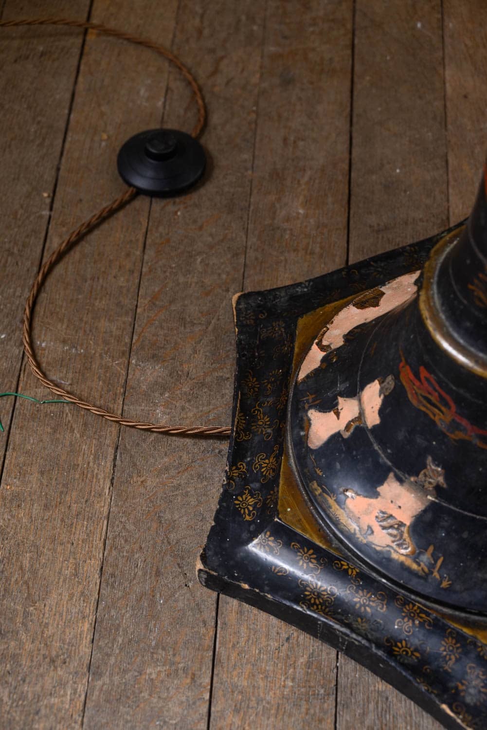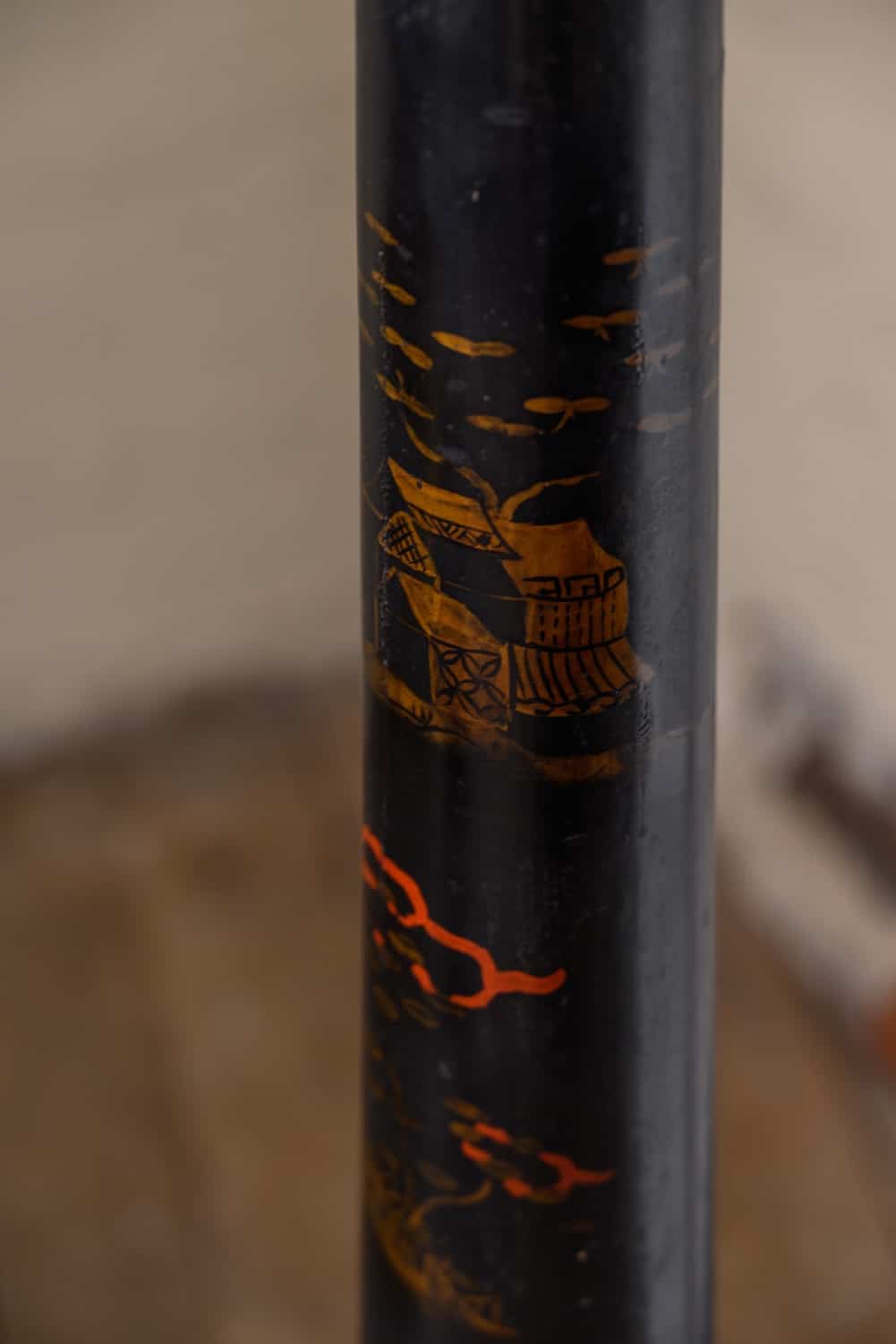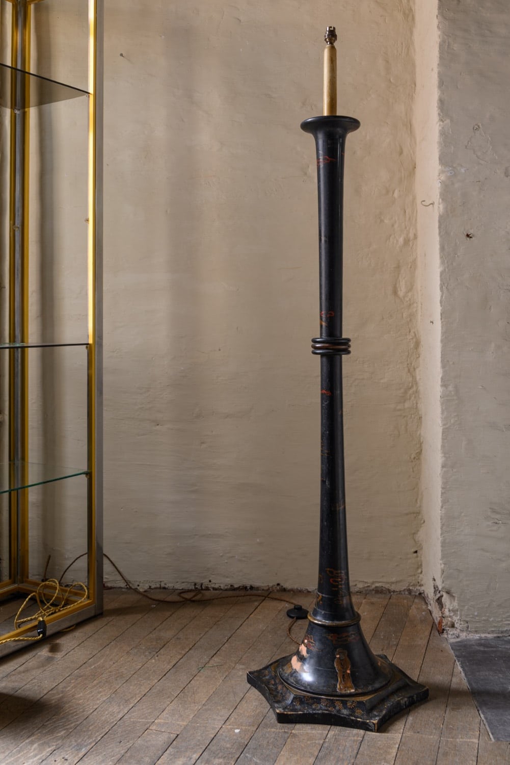 Sculptural Chinoiserie standard lamp. Areas of loss to the paintwork, particularly at the base.