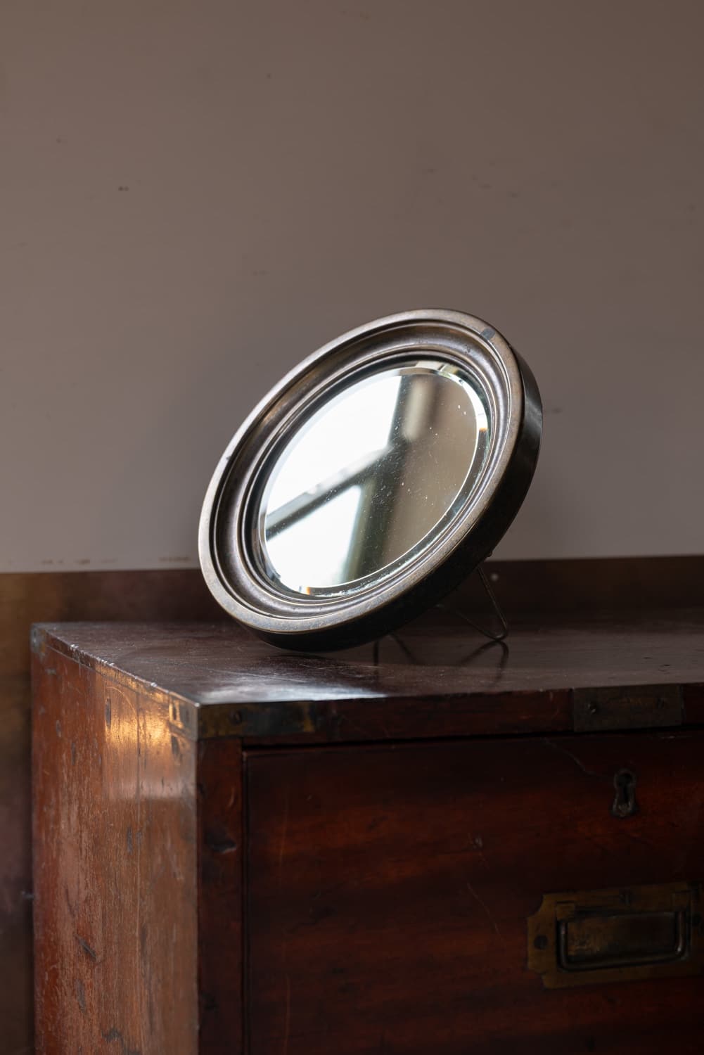 Very sweet circular mirror by Albany. Can be hung on the wall or stood on a table.