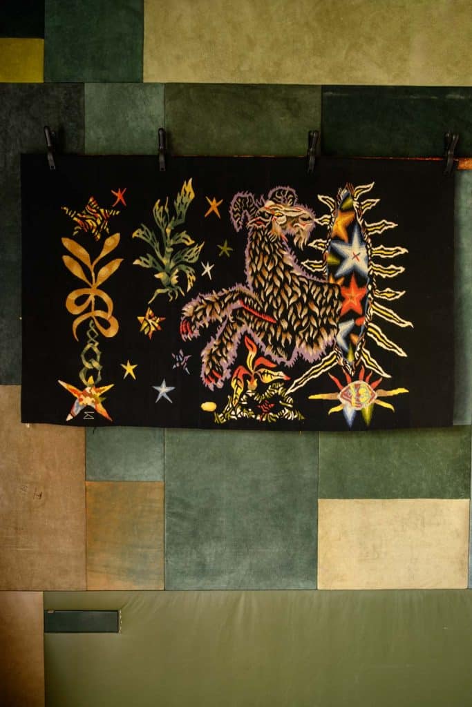 Deep blue velvet-like woollen rug with a floral motif. Handknotted in thick pile.