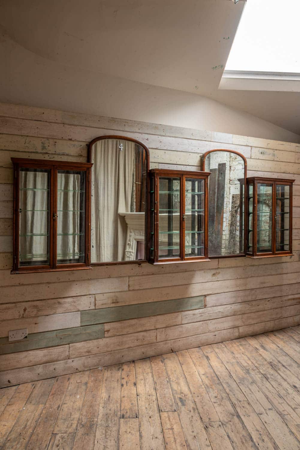 Four cabinets, three mirrors, designed to run along an entire wall.
