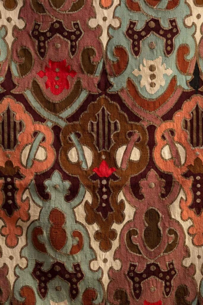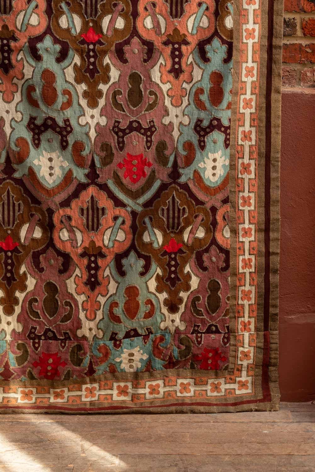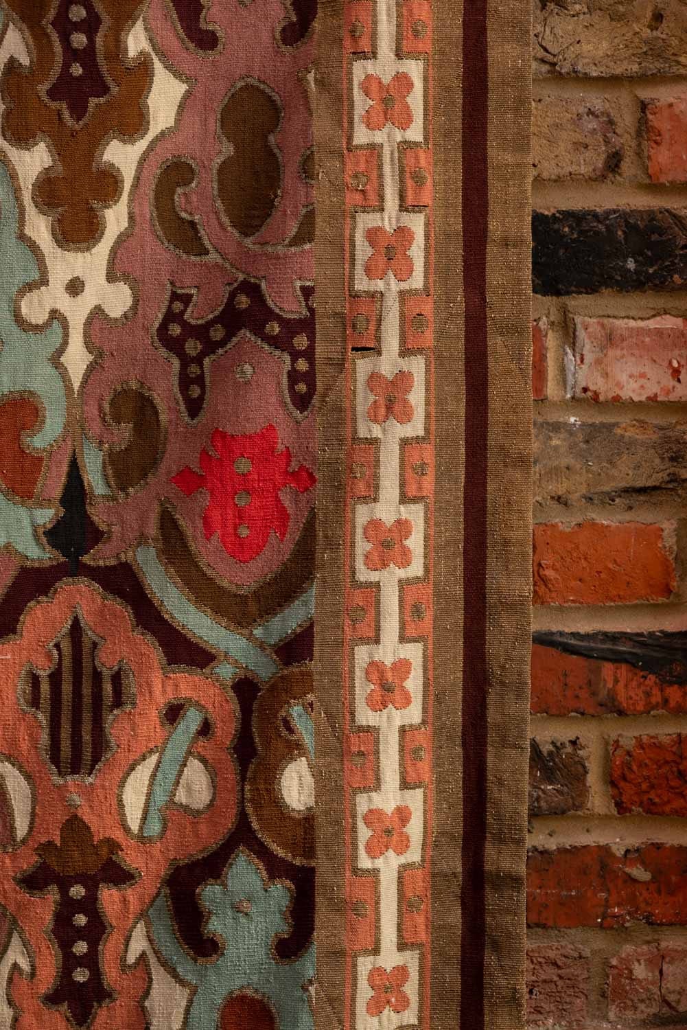 Highly decorative Neo-Gothic wall hanging with lovely soft autumnal tones and metal thread embroidery.