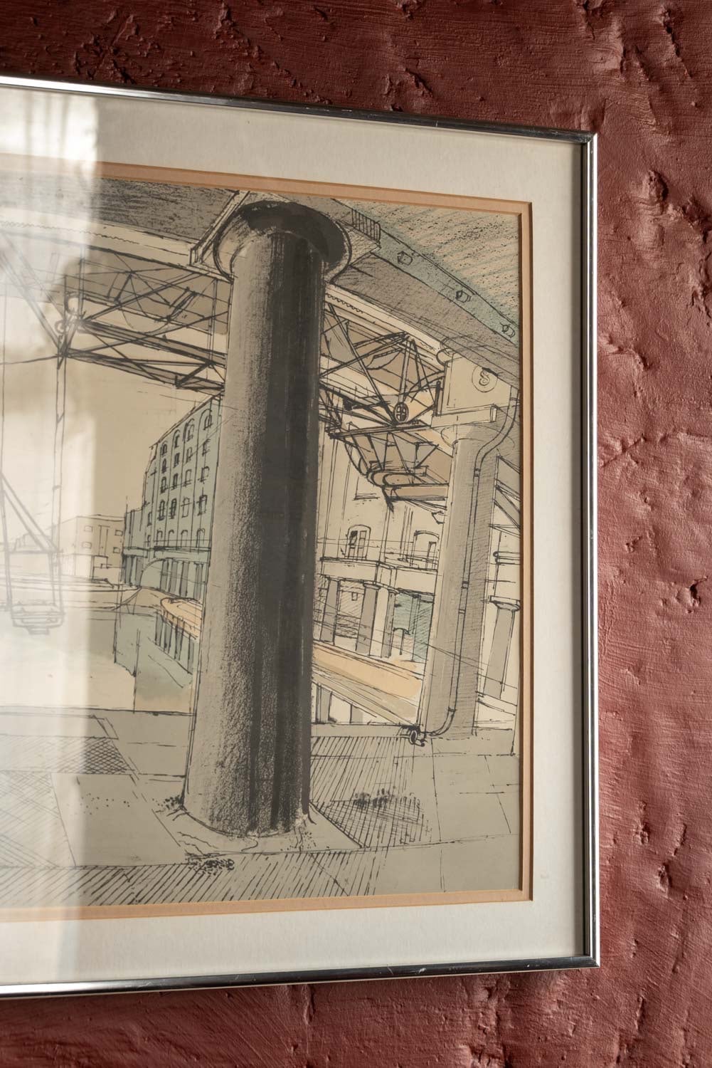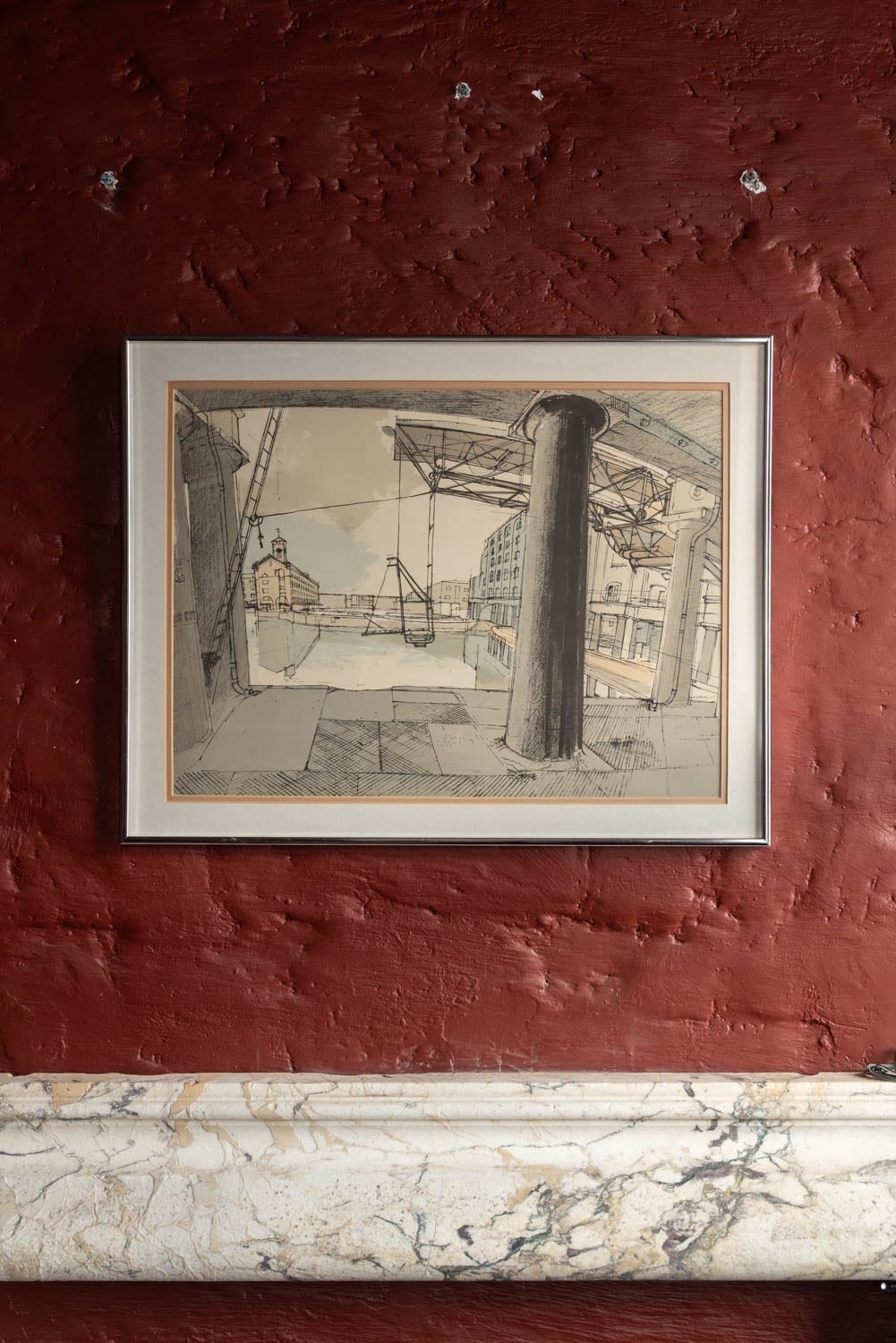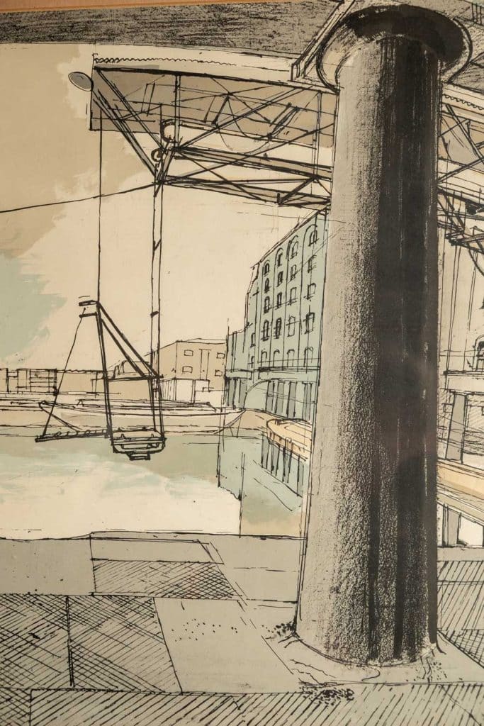 Lithograph of St Katherine's Dock, Liverpool, by Richard Bawden (1936-2024), the son of Edward Bawden.