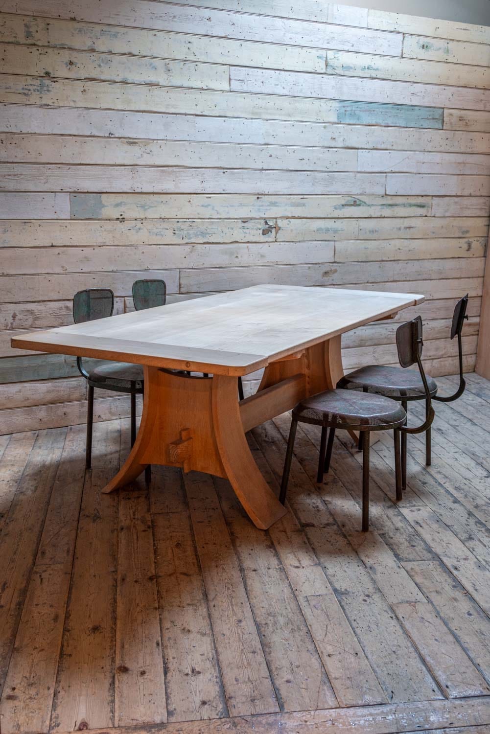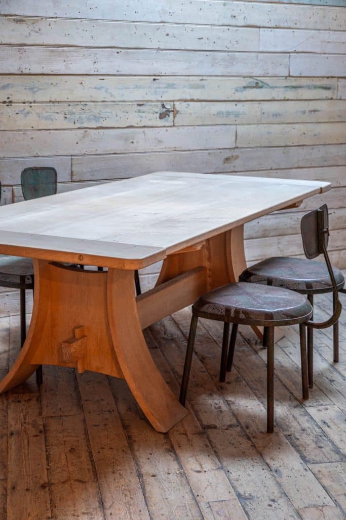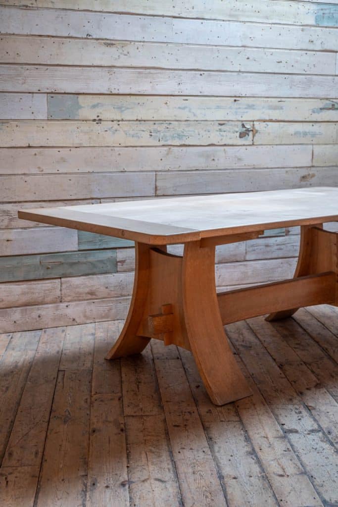 English elm dining table with sculptural curved legs, by Dorset-based Norwegian maker Petter Bjørn Southall.