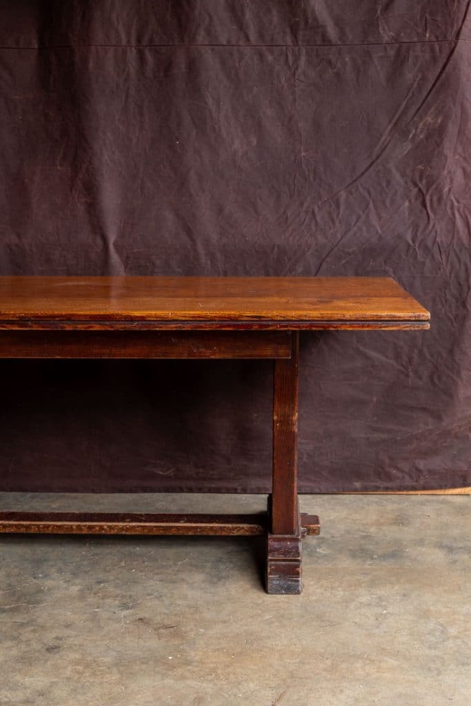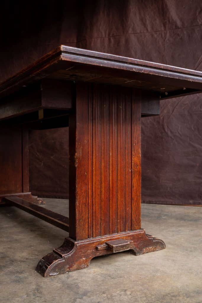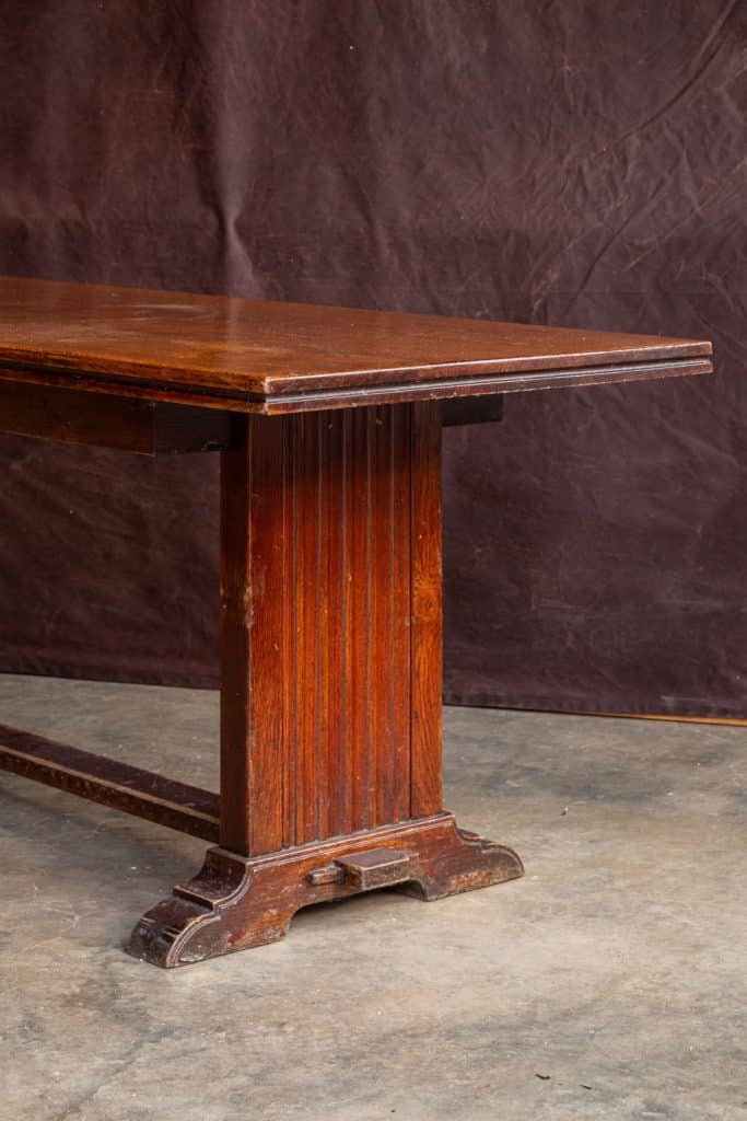 This table was removed from a building at the University of Nottingham, designed by English architect Percy Richard Morley Horder. We believe he also designed this table.