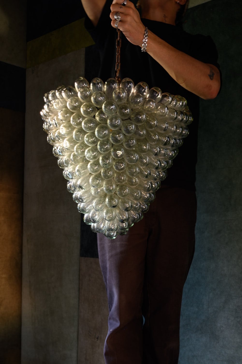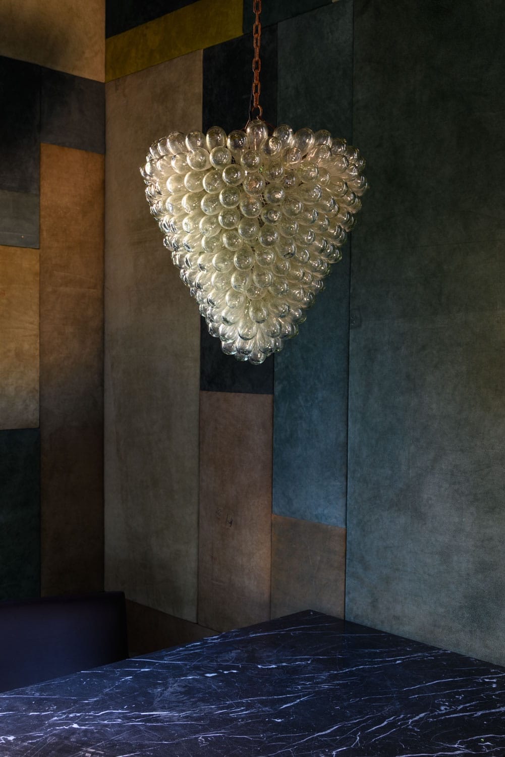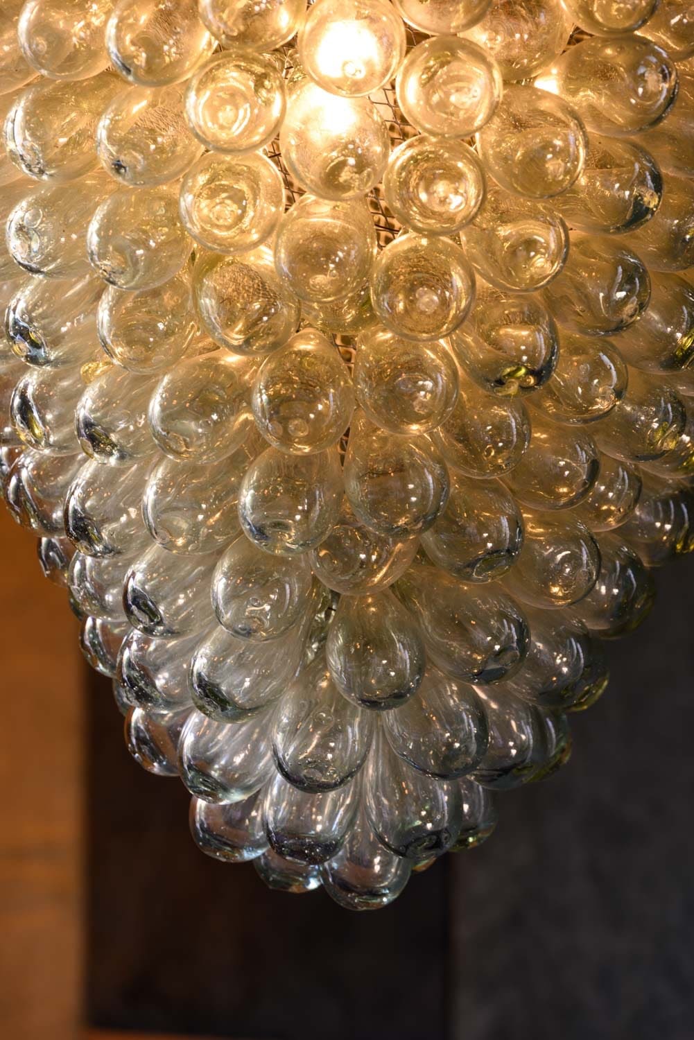 Hand-blown glass 'grape' chandelier, originally from Liberty of London.