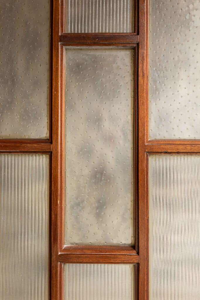 A wonderfully unusual architectural element. Mixed textured glass panels in a solid hardwood frame. Would make a great room divider or internal window.