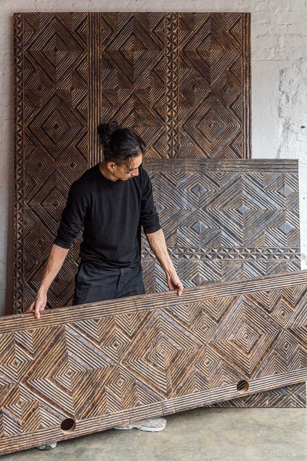 3. Hand-Carved Geometric Panels #6783
