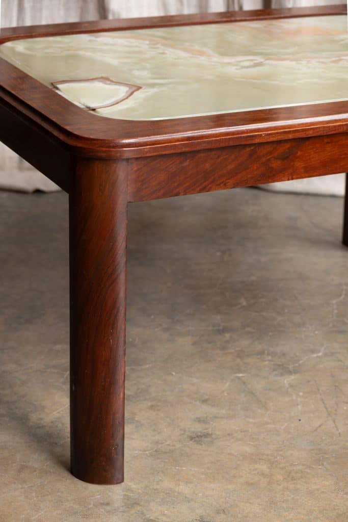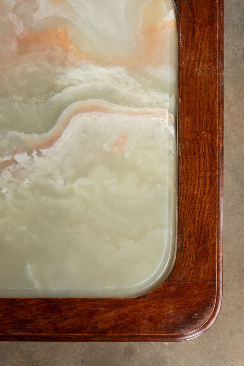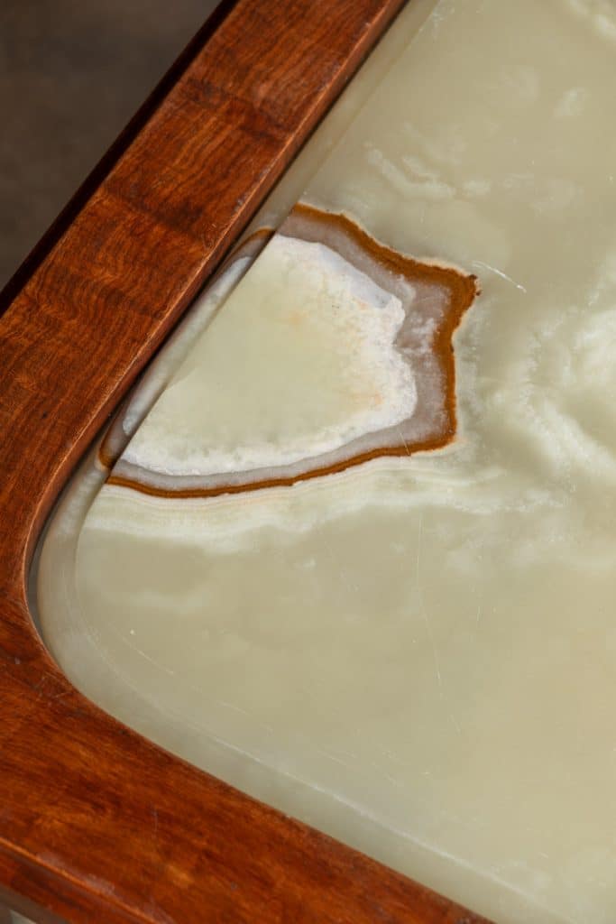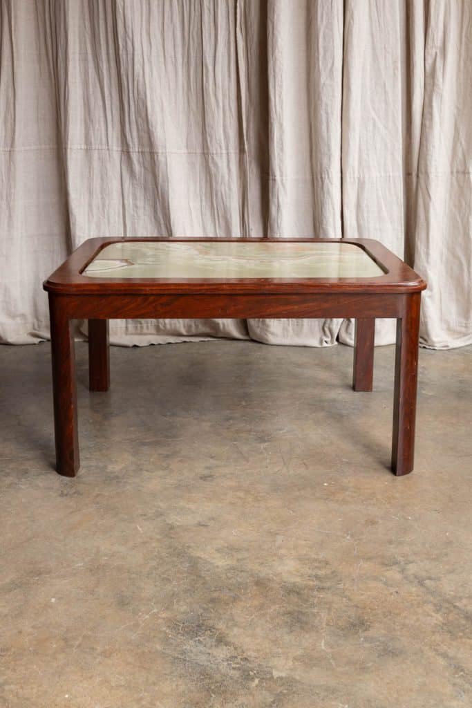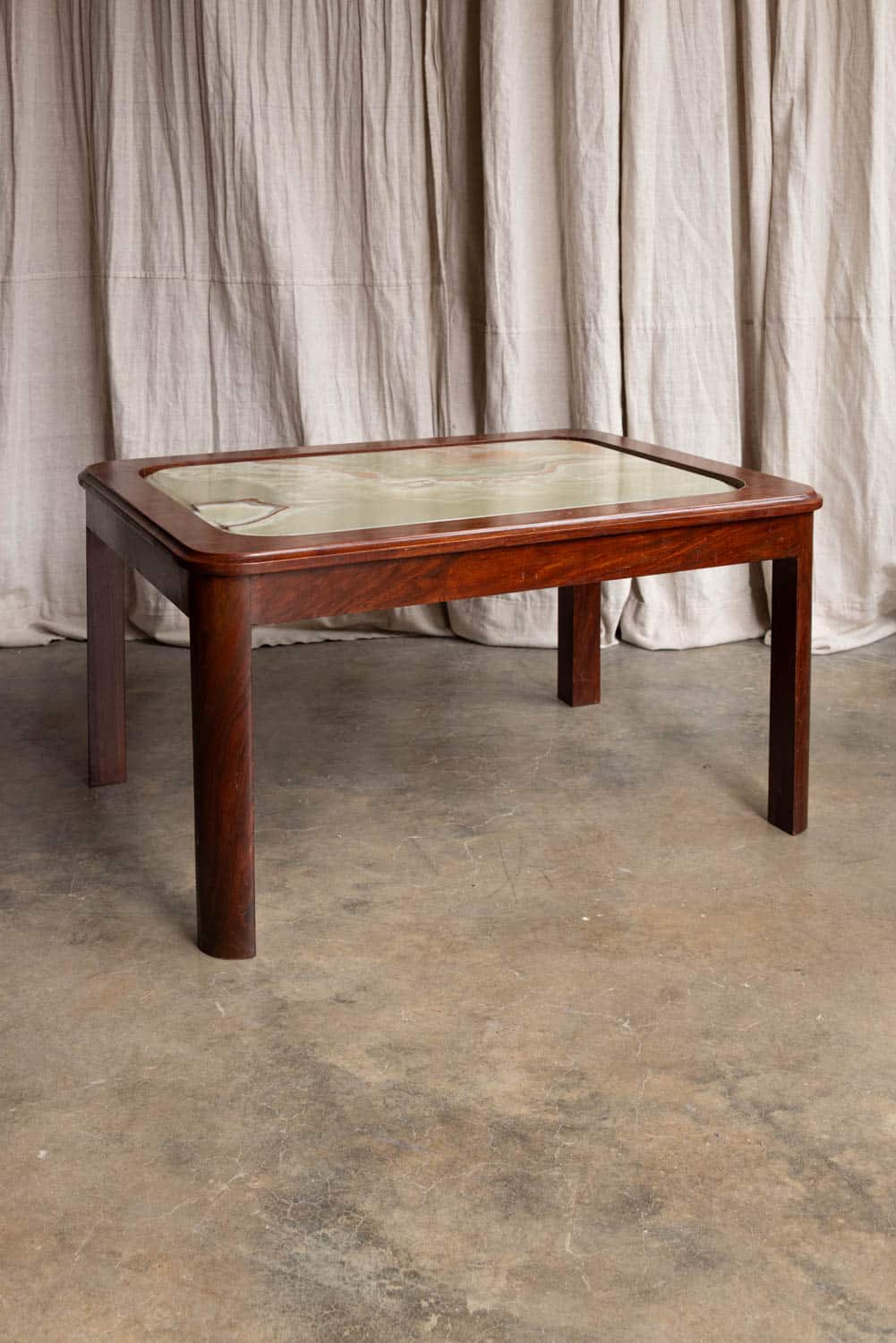 Midcentury hardwood coffee table with a later drop-in onyx centre.
