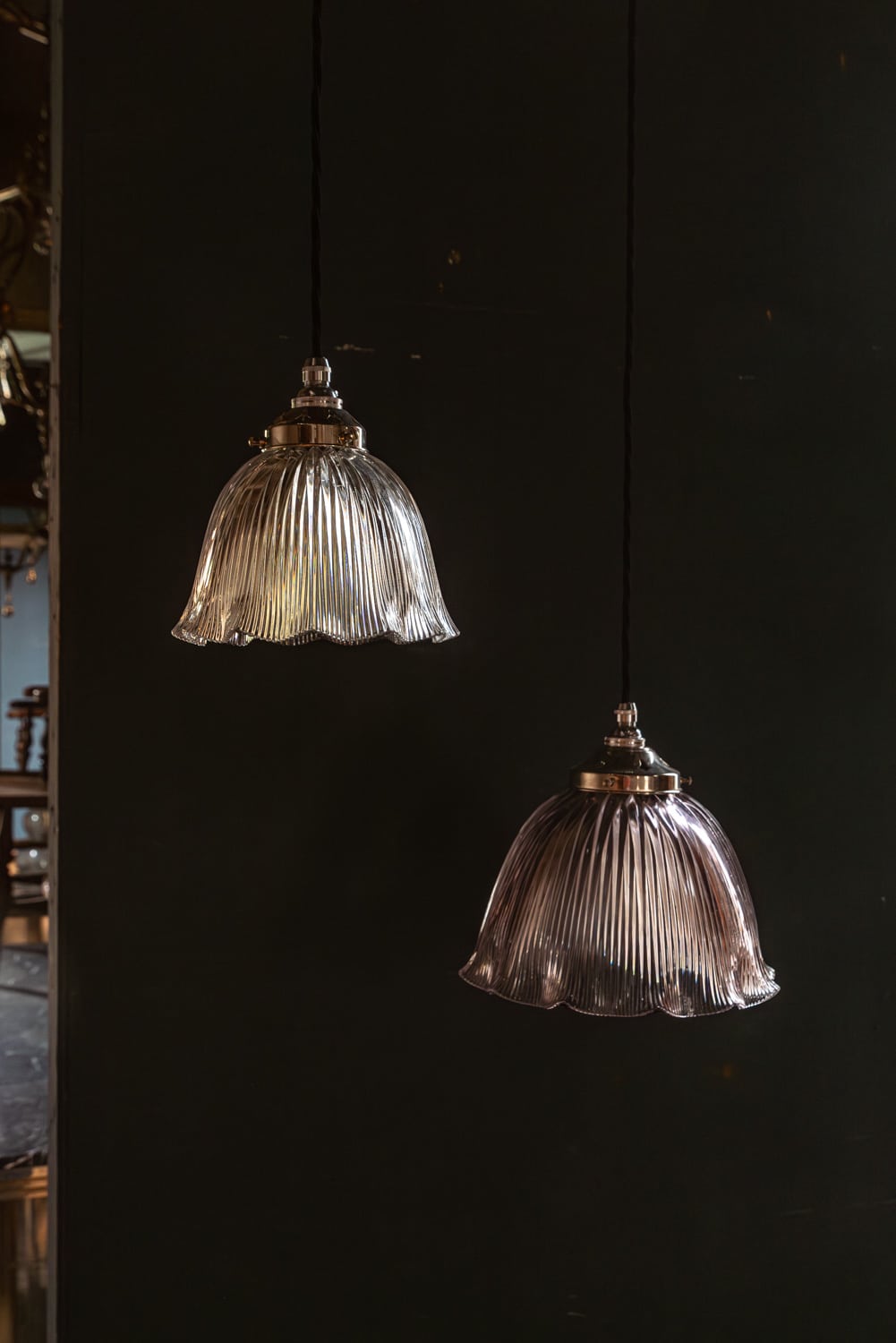 Two very sweet frilly holophane pendants.
