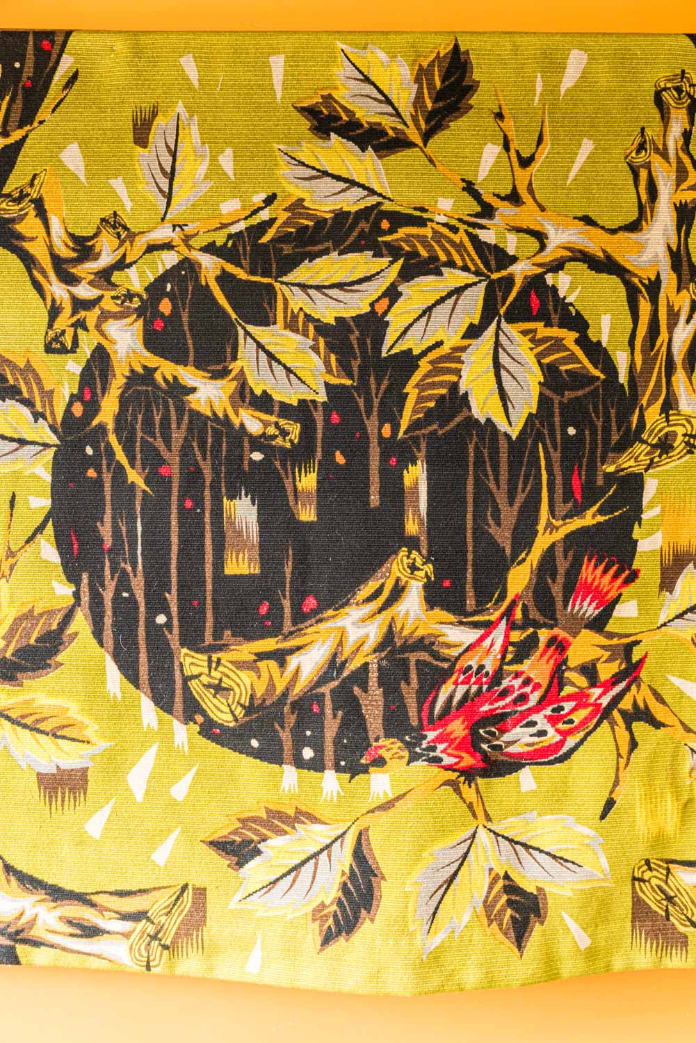 Jean Claude Bissery tapestry for Robert Four depicting a stylised forest scene.