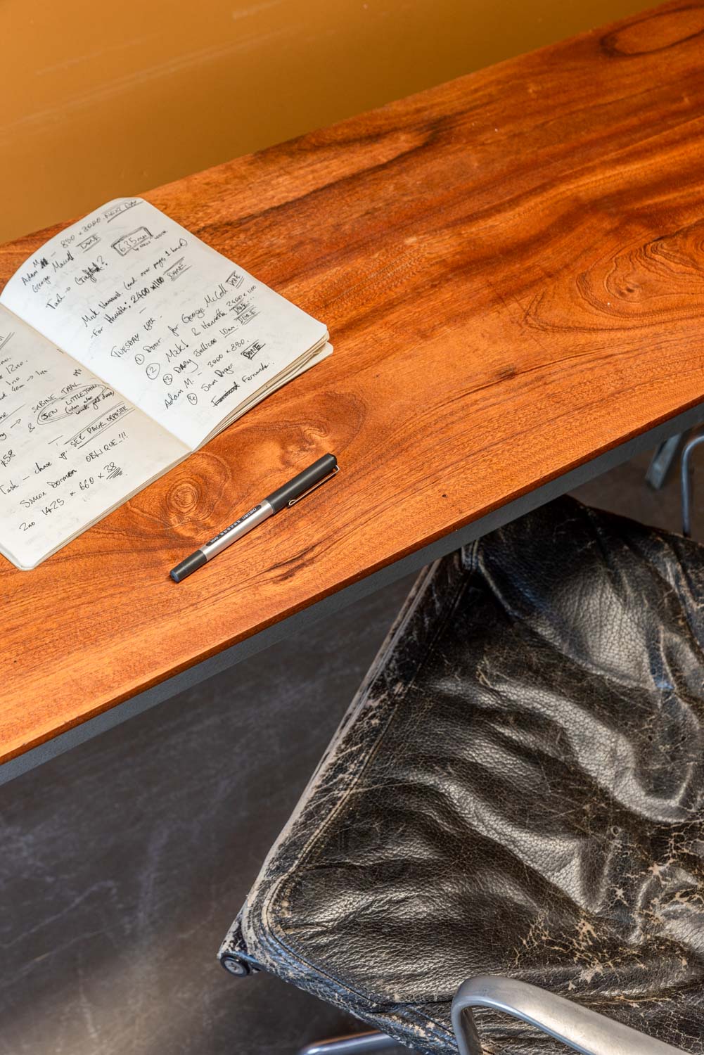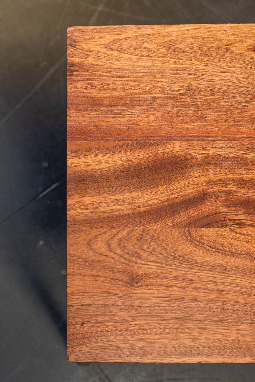 1950's console table designed by James Leonard for Esavian. Made with a solid hardwood top and cast aluminium frame. A brilliant addition to any midcentury or industrial design aesthetic.