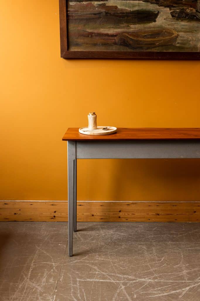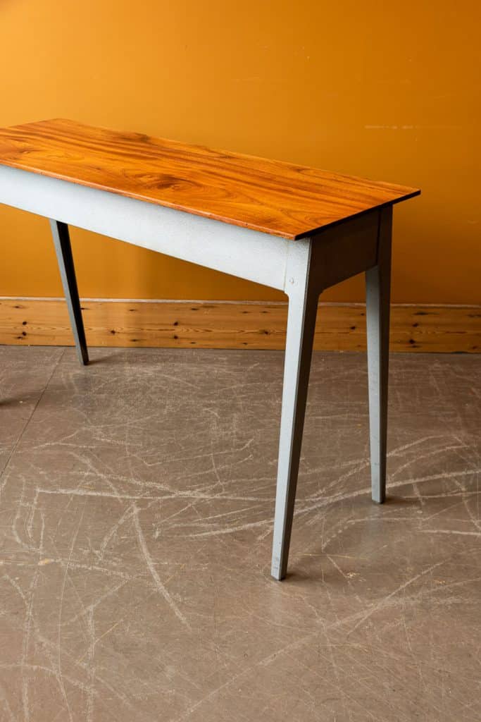 1950's console table designed by James Leonard for Esavian. Made with a solid hardwood top and cast aluminium frame. A brilliant addition to any midcentury or industrial design aesthetic.