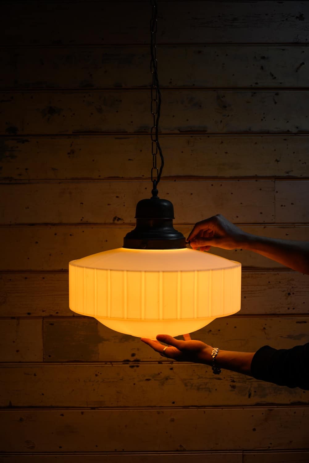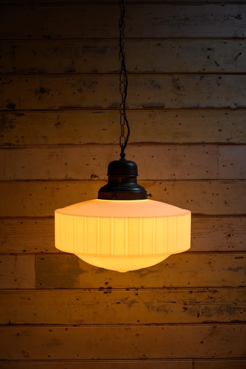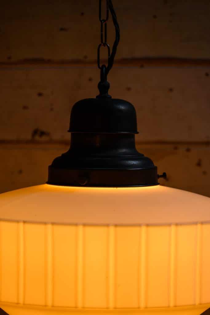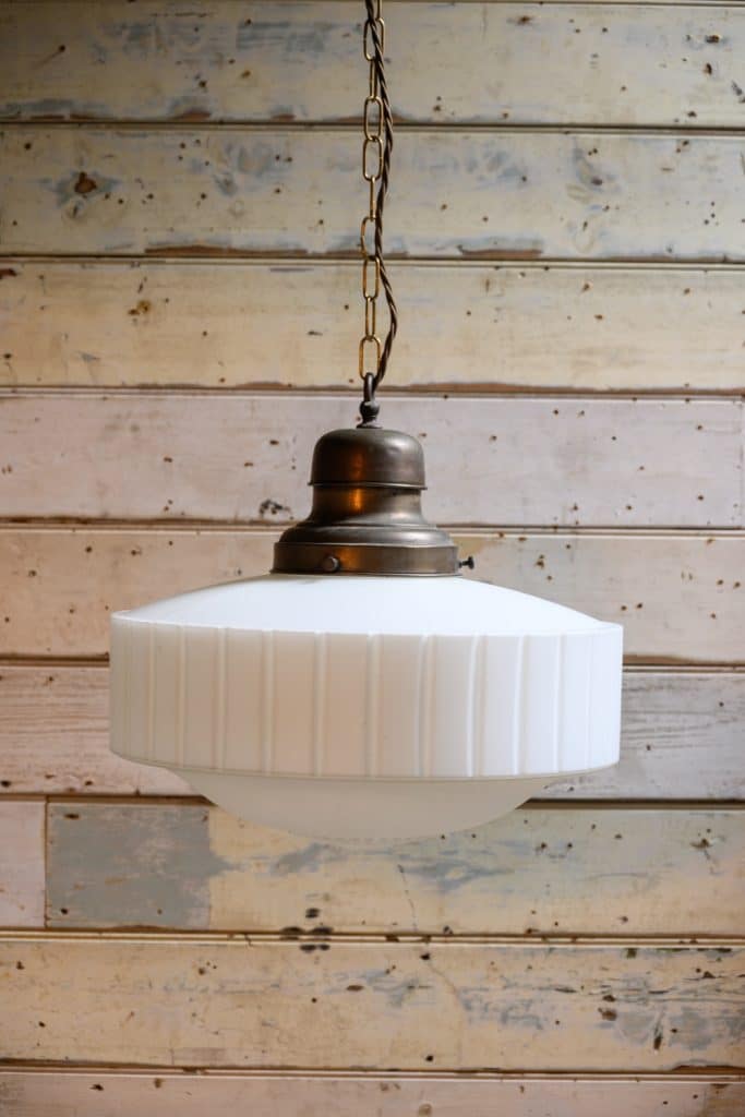 1920s opaque cast glass hanging light, fitted with a period gallery.