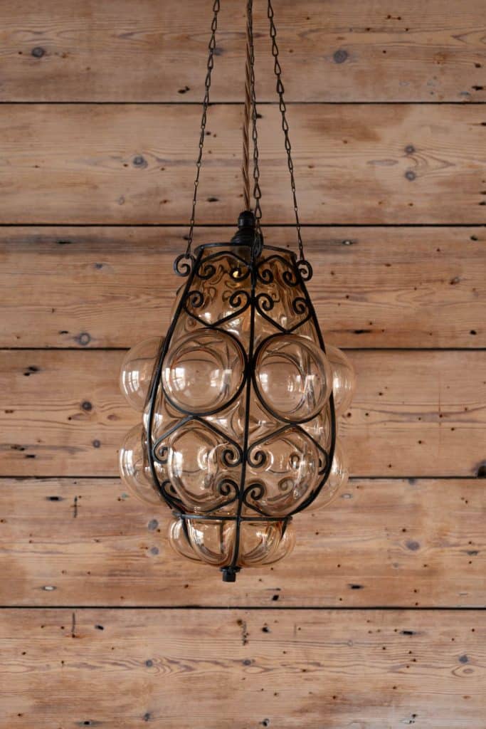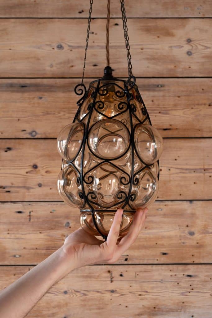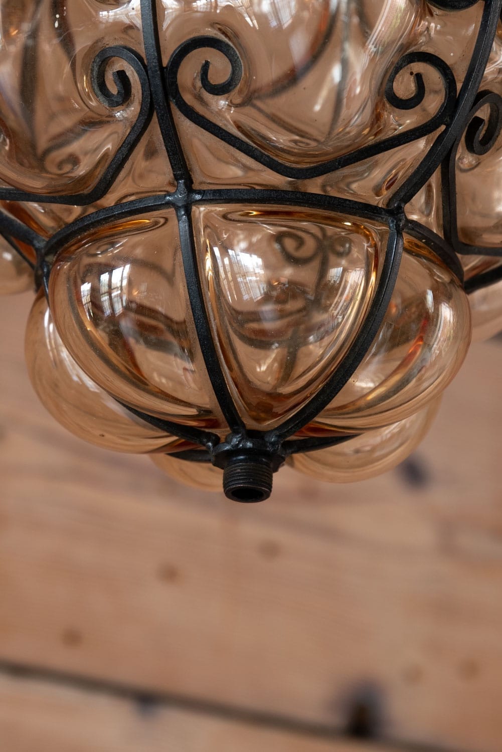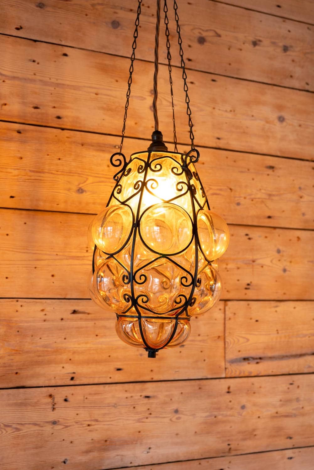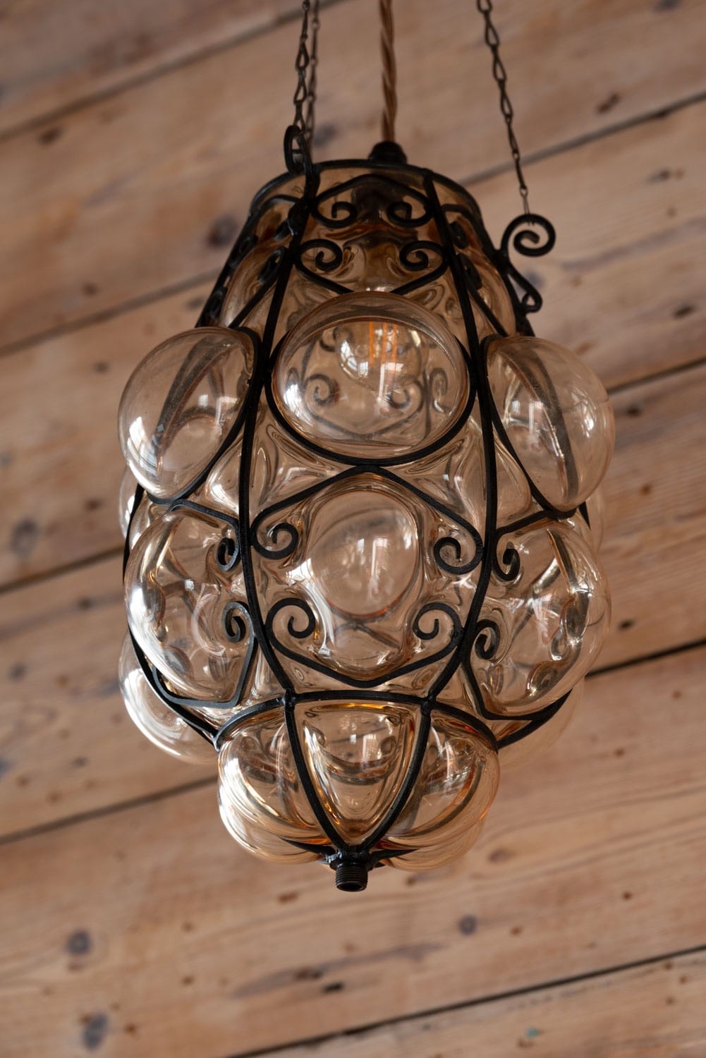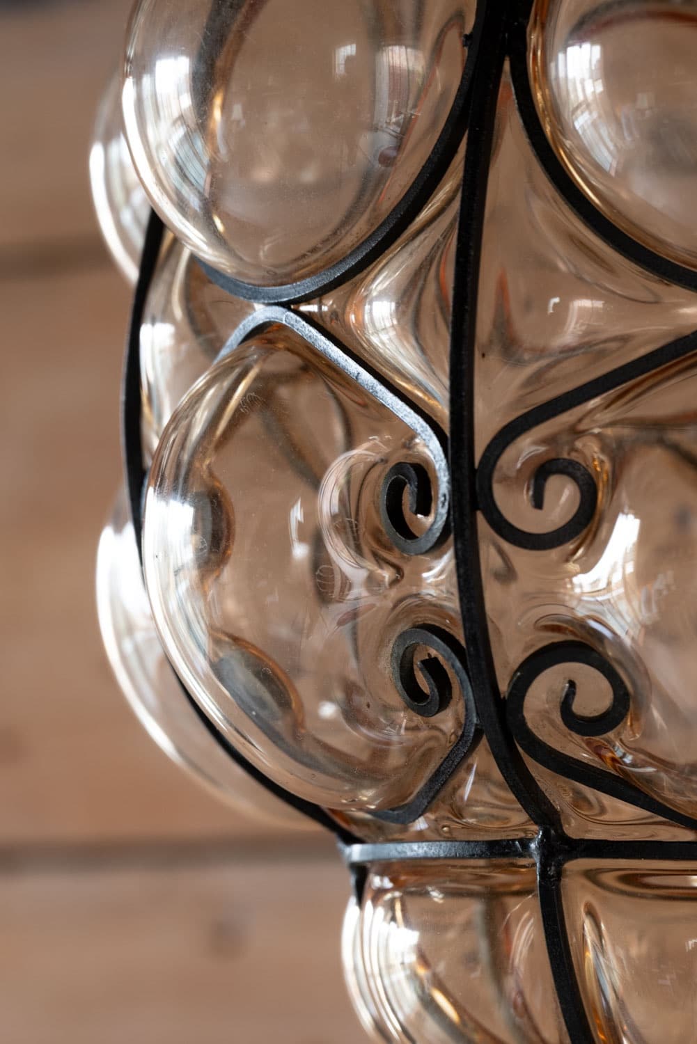Large Murano bubble lantern, formed by blowing glass within a metal cagework.