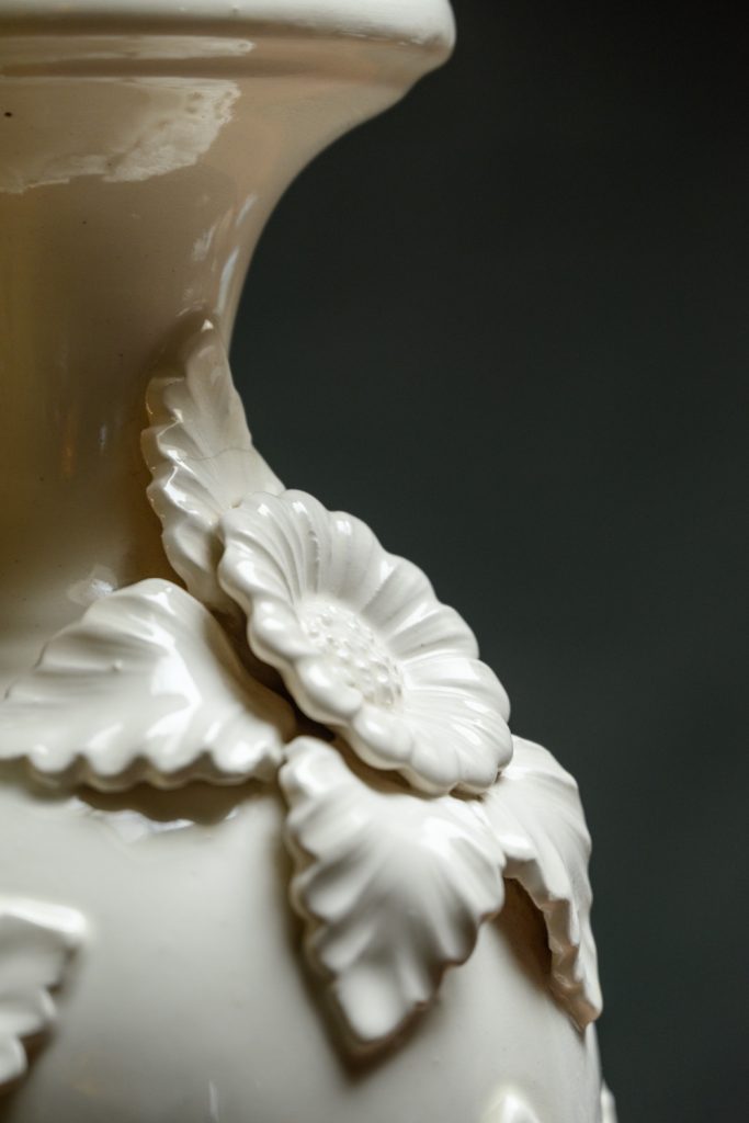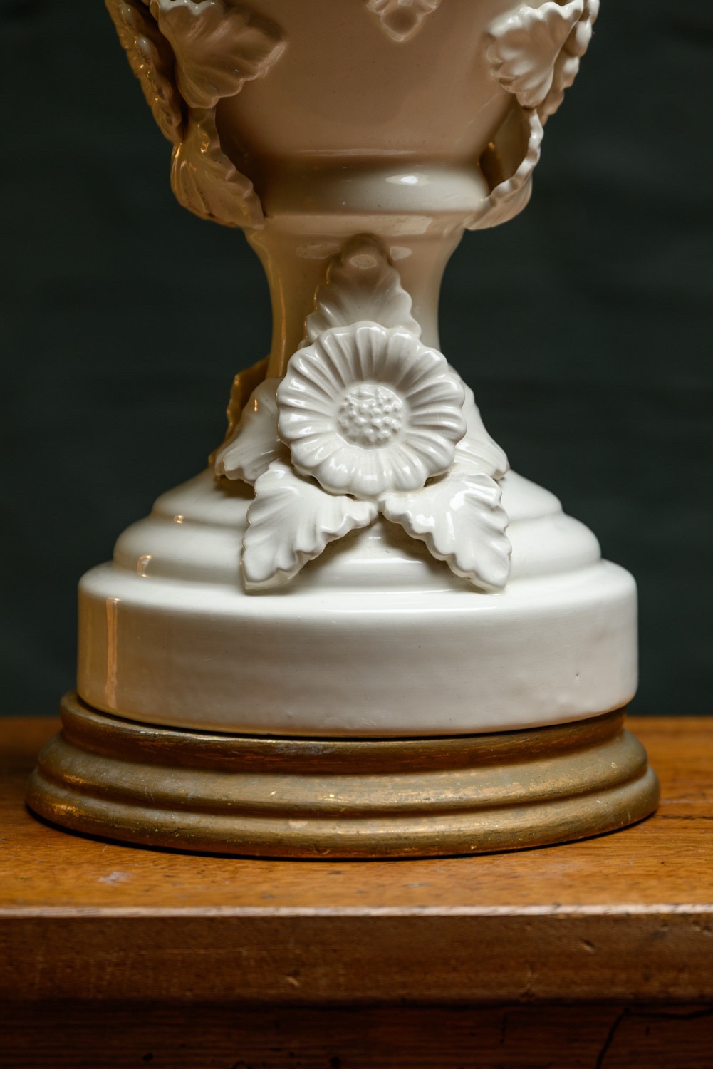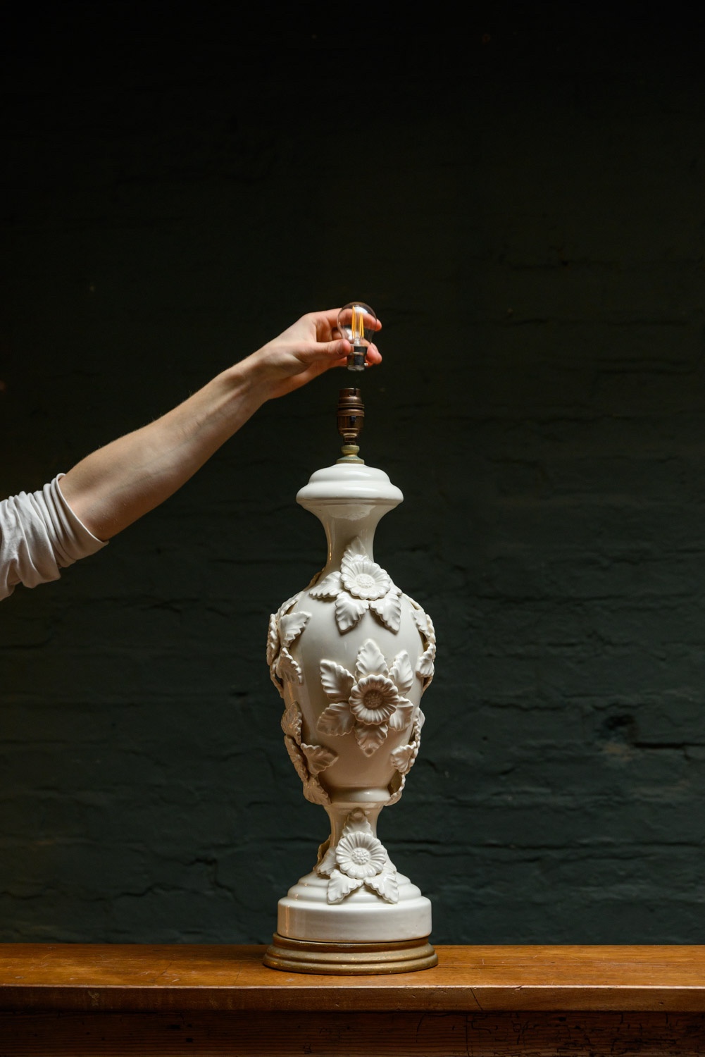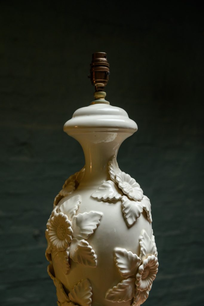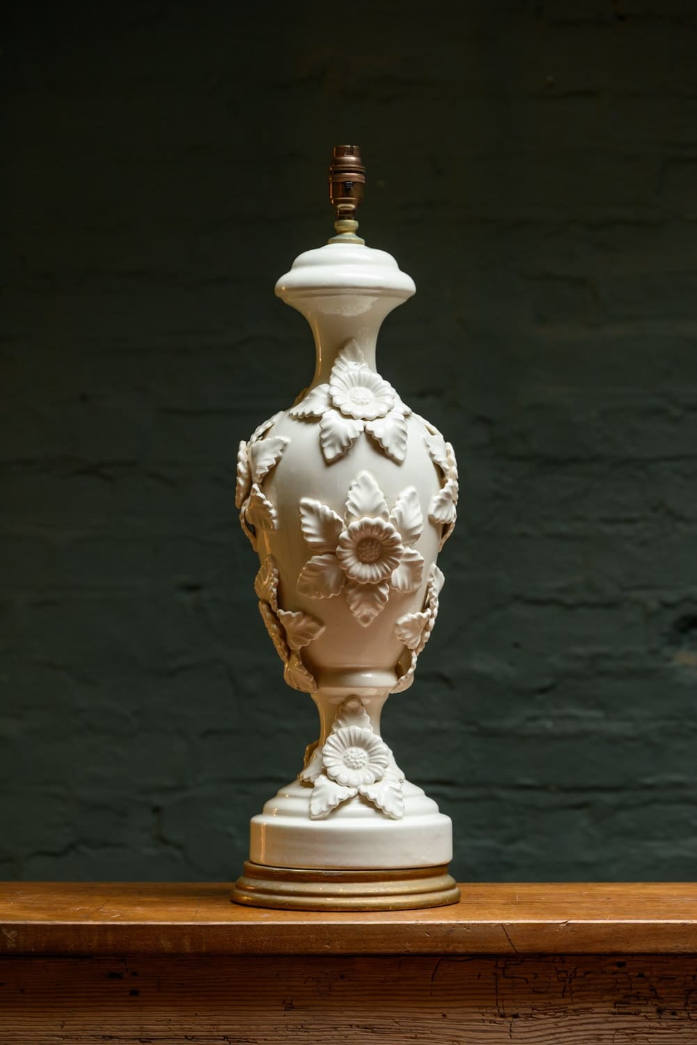 Handsome Casa Pupo / Manises lamp, 1960s, with an ordered floral motif and giltwood base.