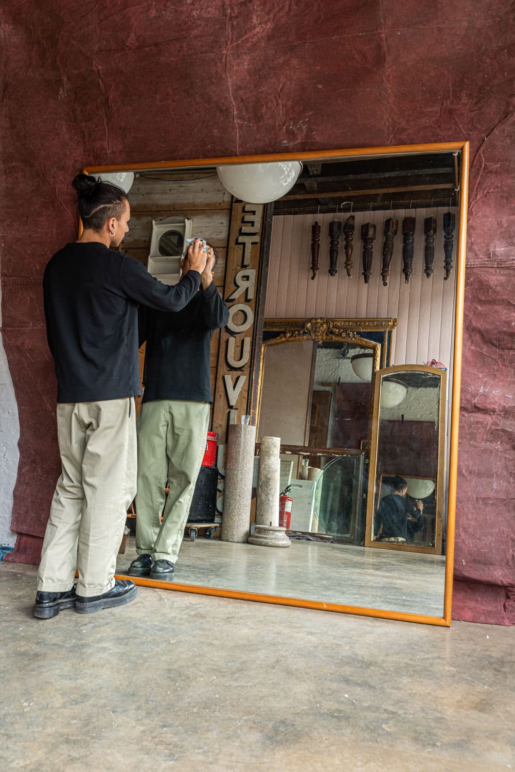 Impressively large c1980s mirror with a bullnose pine frame.