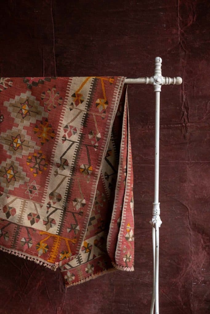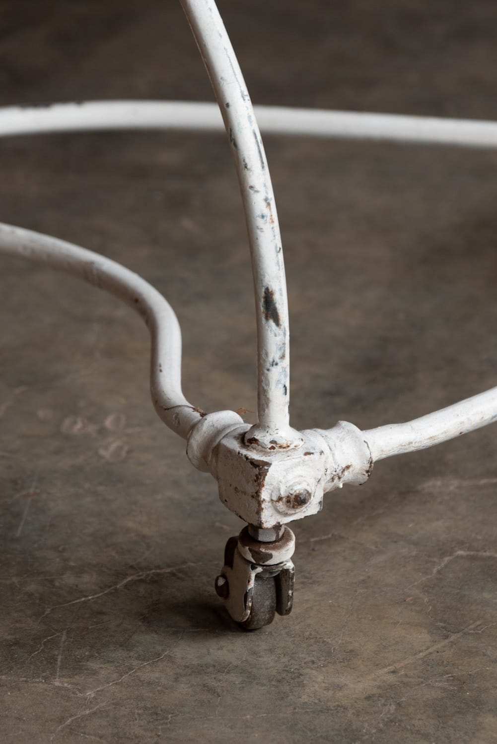 The white paint is chipped in places and worn off the top rail.