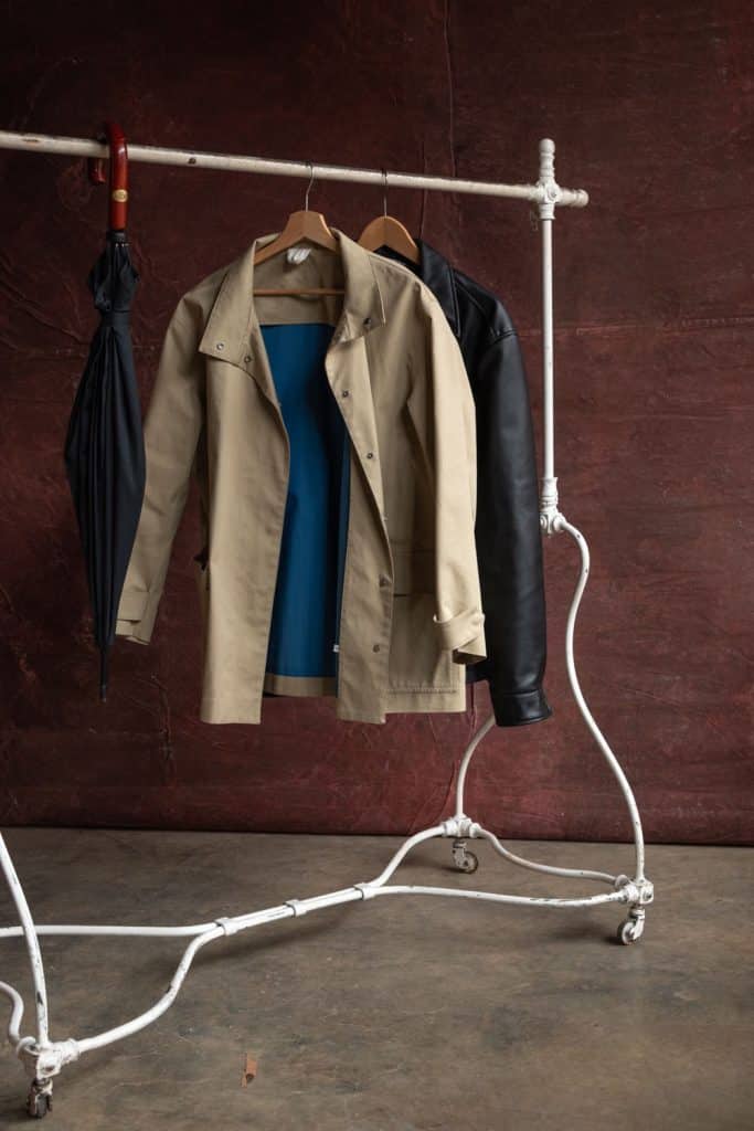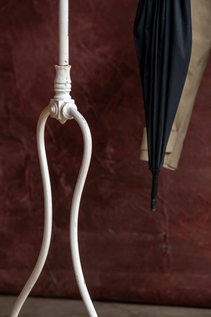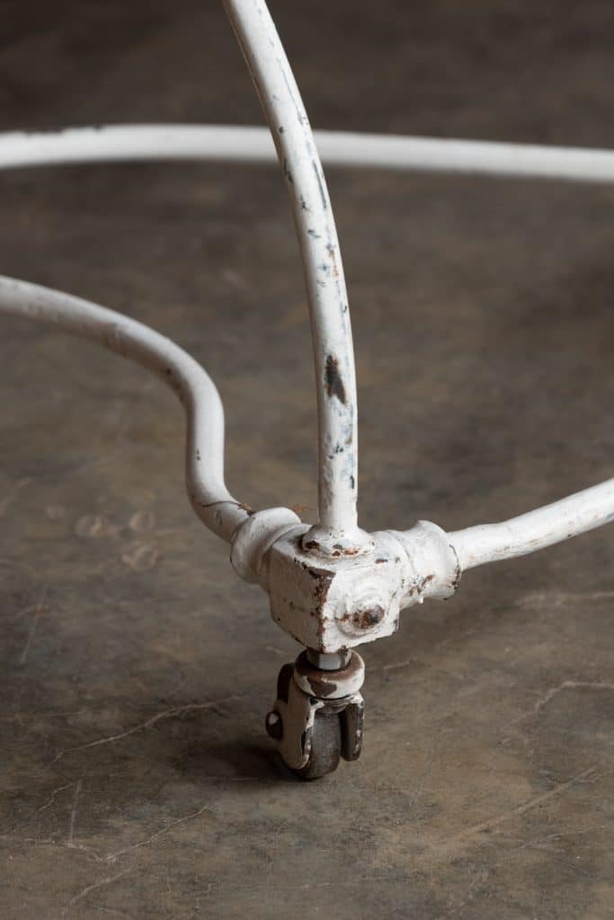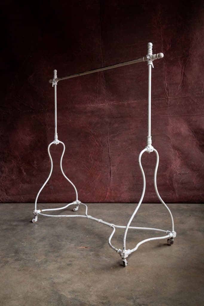 Midcentury French clothes rail on metal casters in great working order.