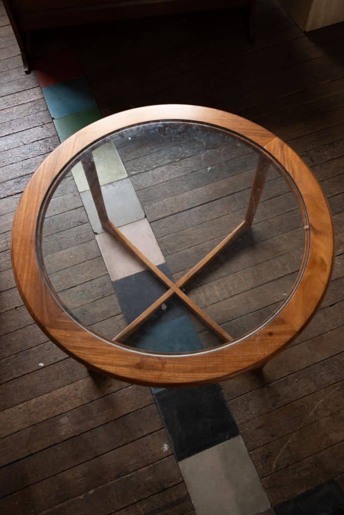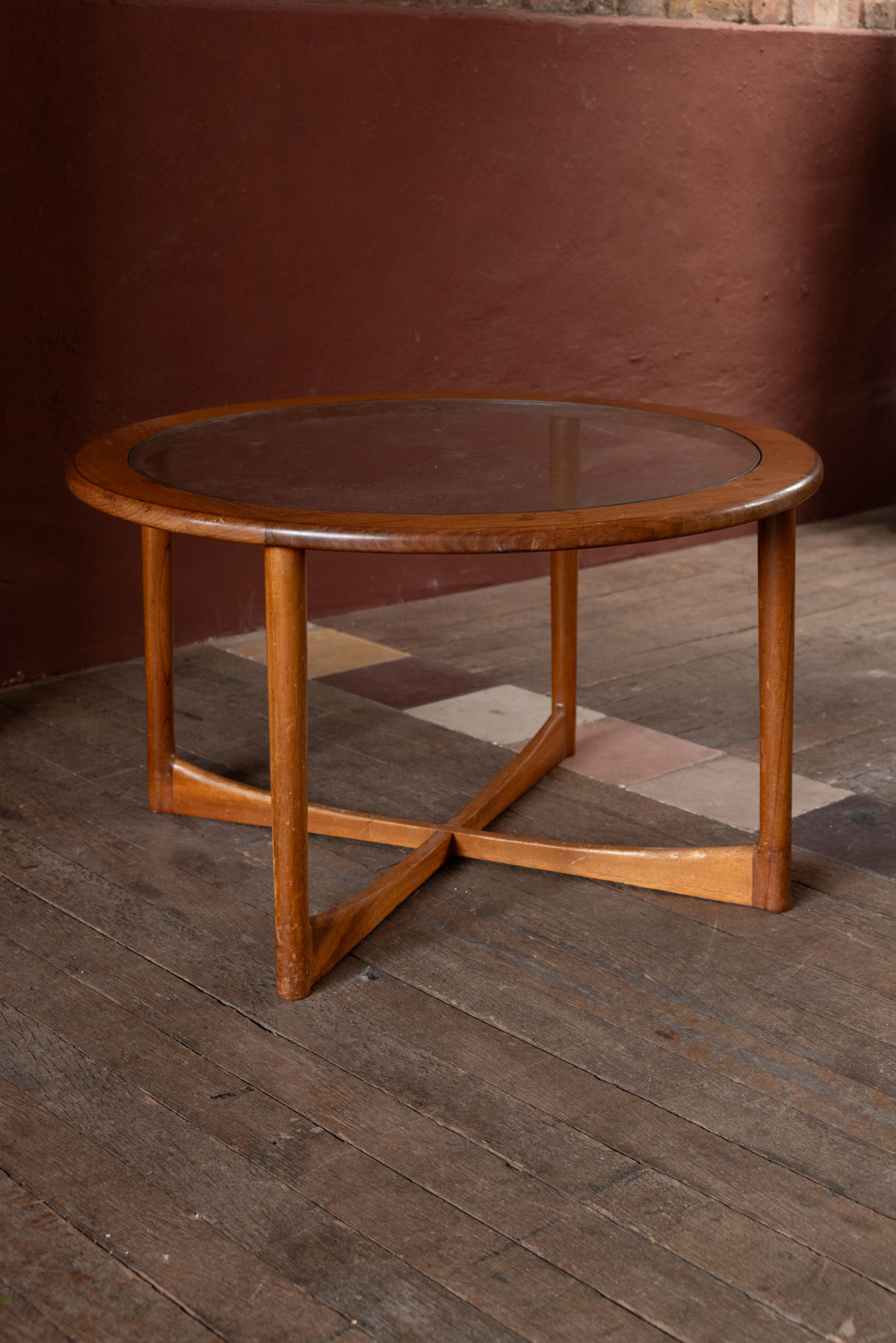 3. Midcentury Teak & Glass Circular Coffee Table #1344