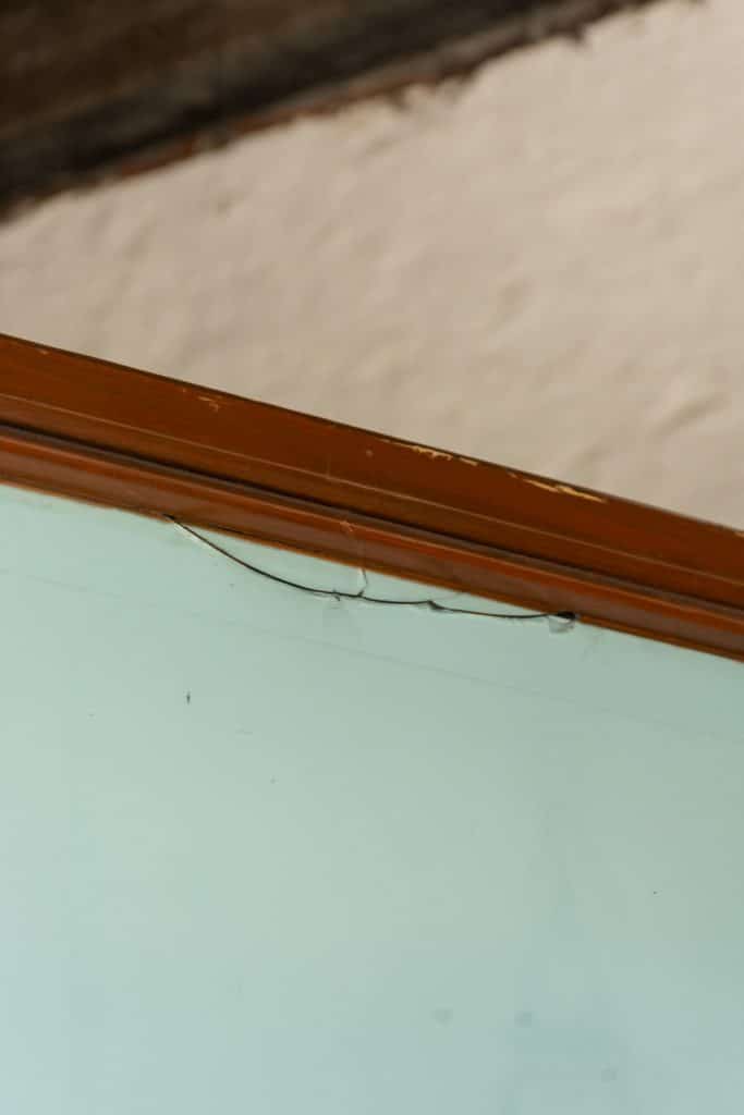 Partially glazed museum case with tinted glass, backed with pale blue boards, one featuring text on animal defences. Salvaged from a London museum.