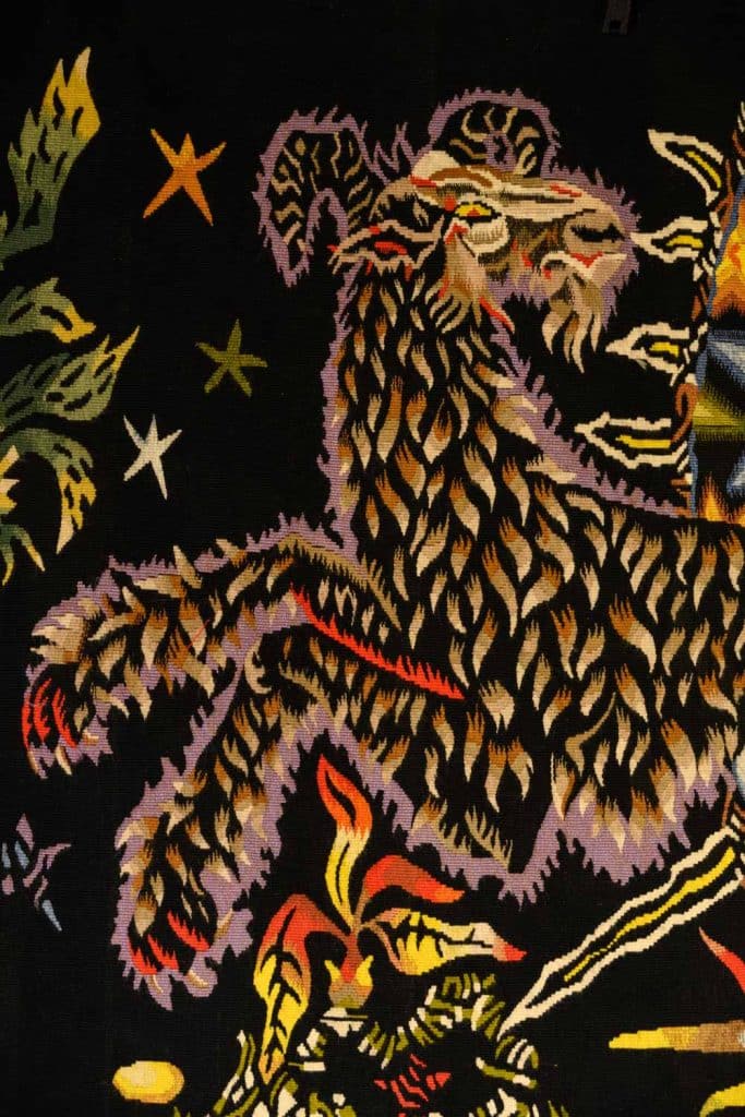 Tapestry by famed French artist Jean Lurçat, portraying a goat emerging from a cosmic portal.