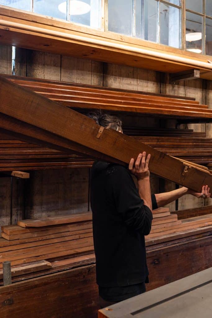 Oak planks saved from early 20th century church pews.