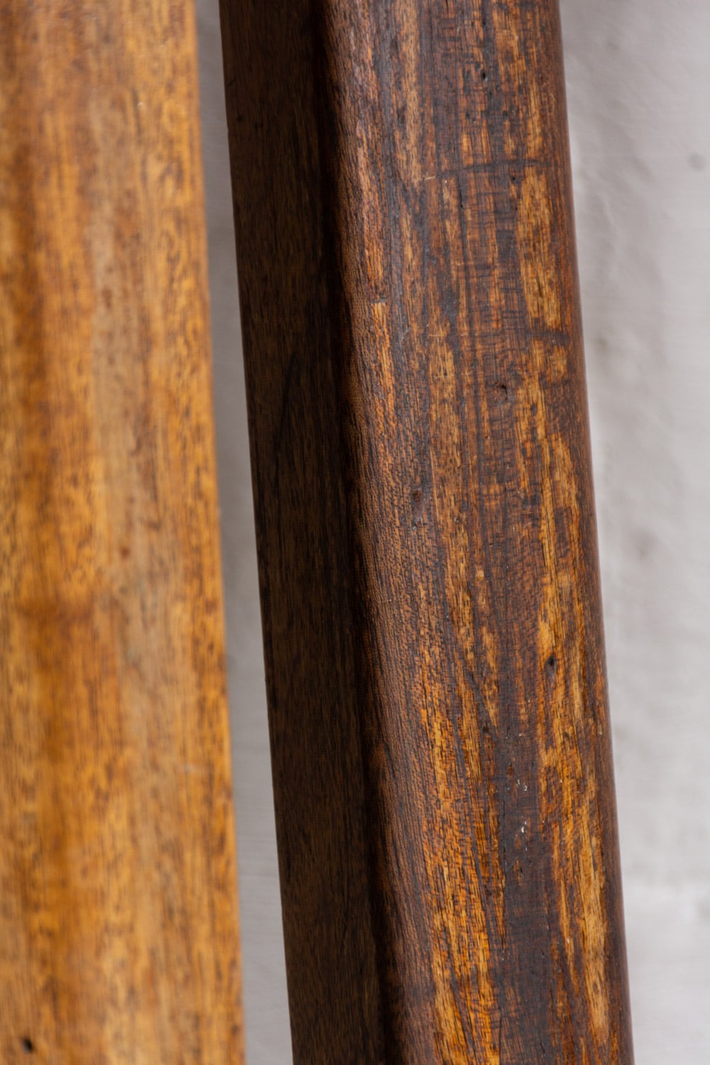 Lengths of patinated hardwood. Excellent quality. Formerly hand railing. Many metres available.