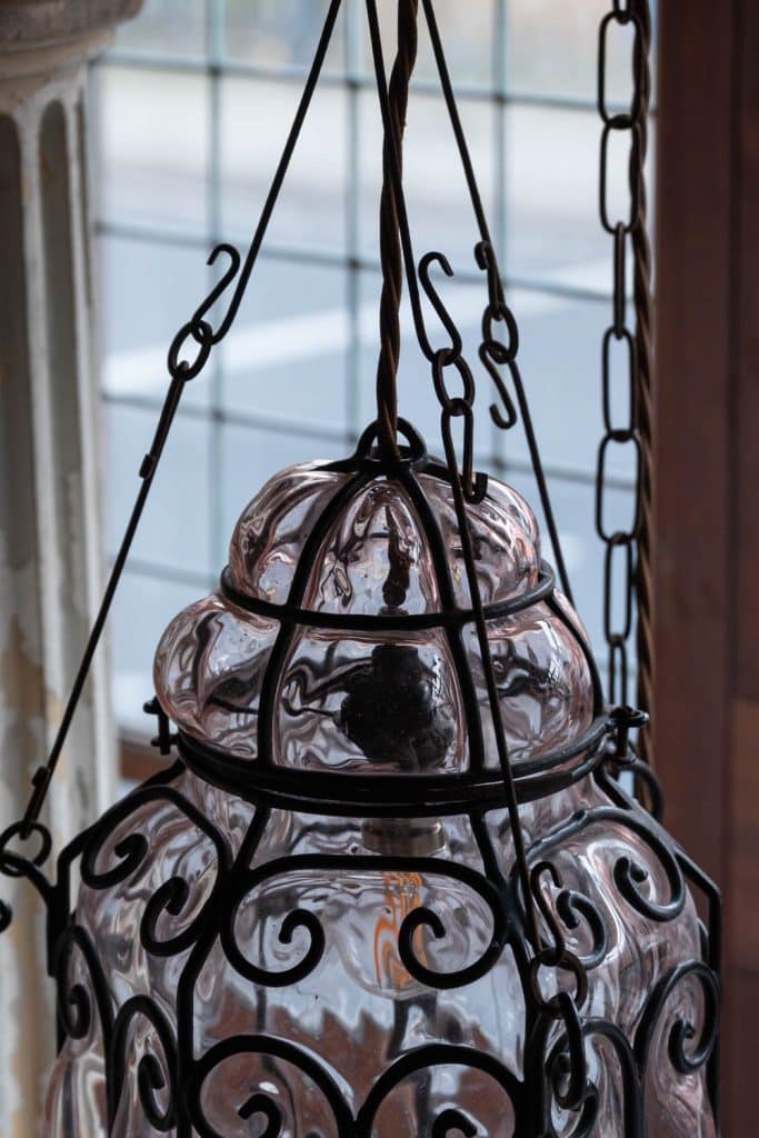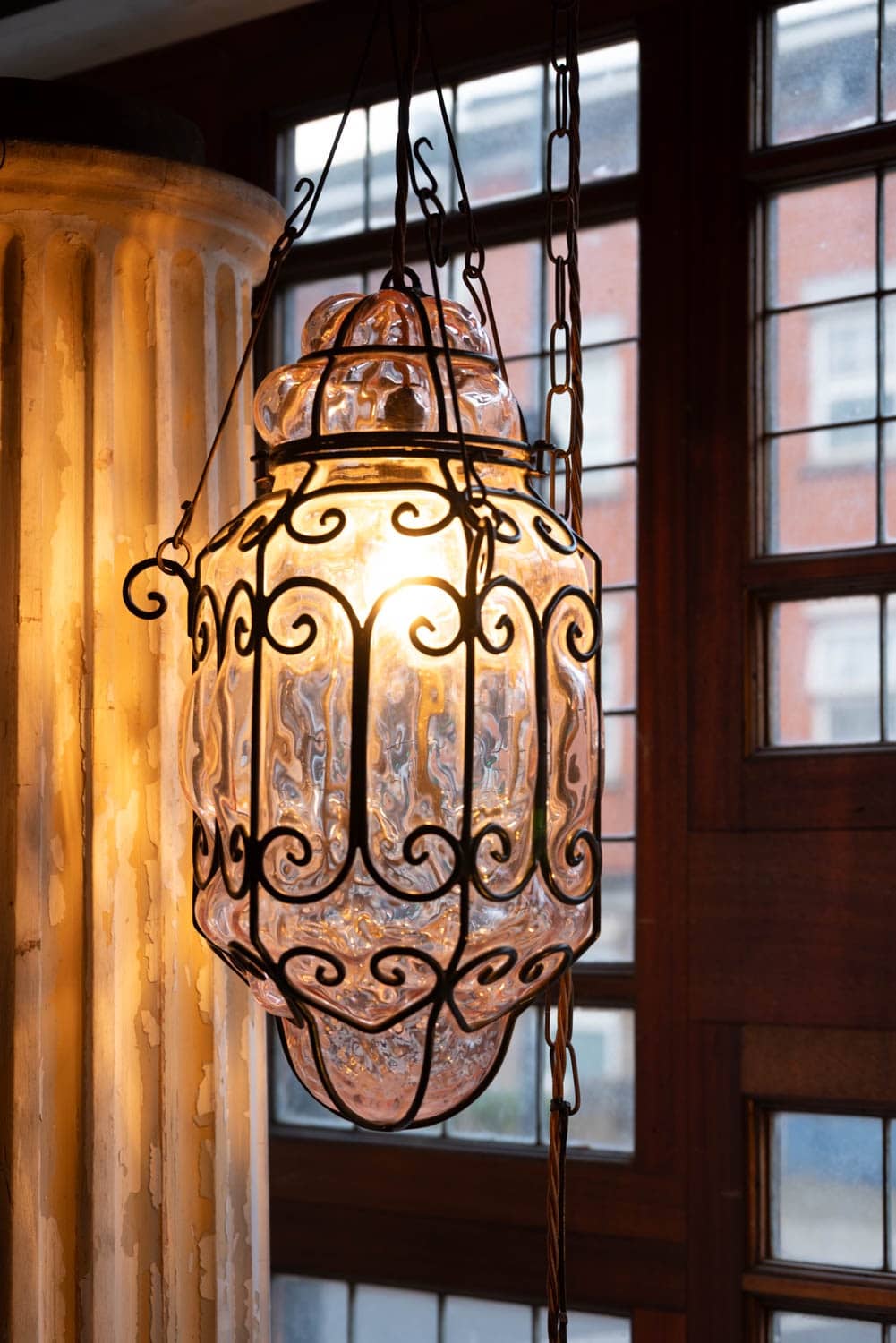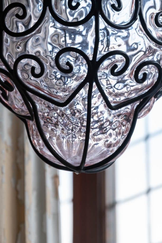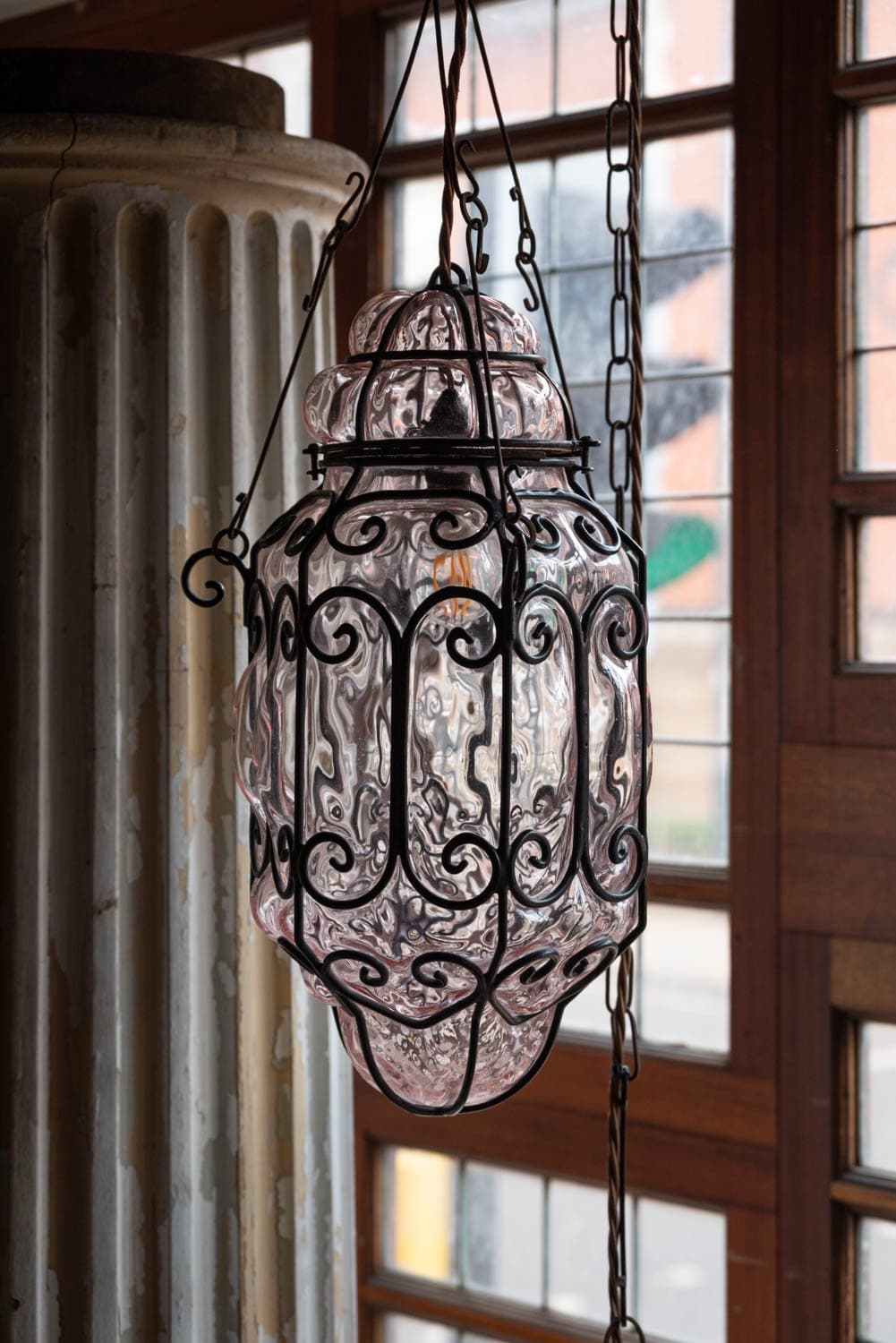 Murano glass bubble lantern with a slight pink tint.