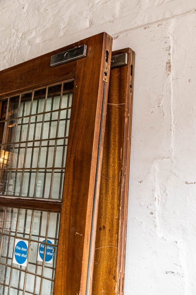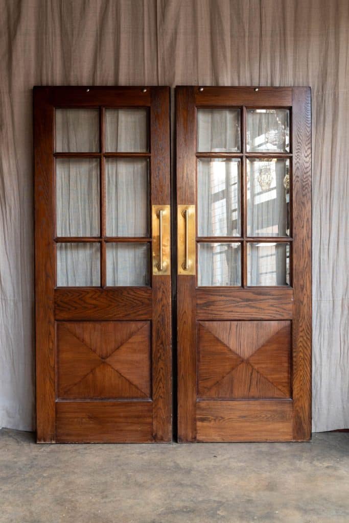 1920/30s reclaimed copperlight doors made with a solid mahogany frame. Salvaged from a commercial building in London and in good condition.