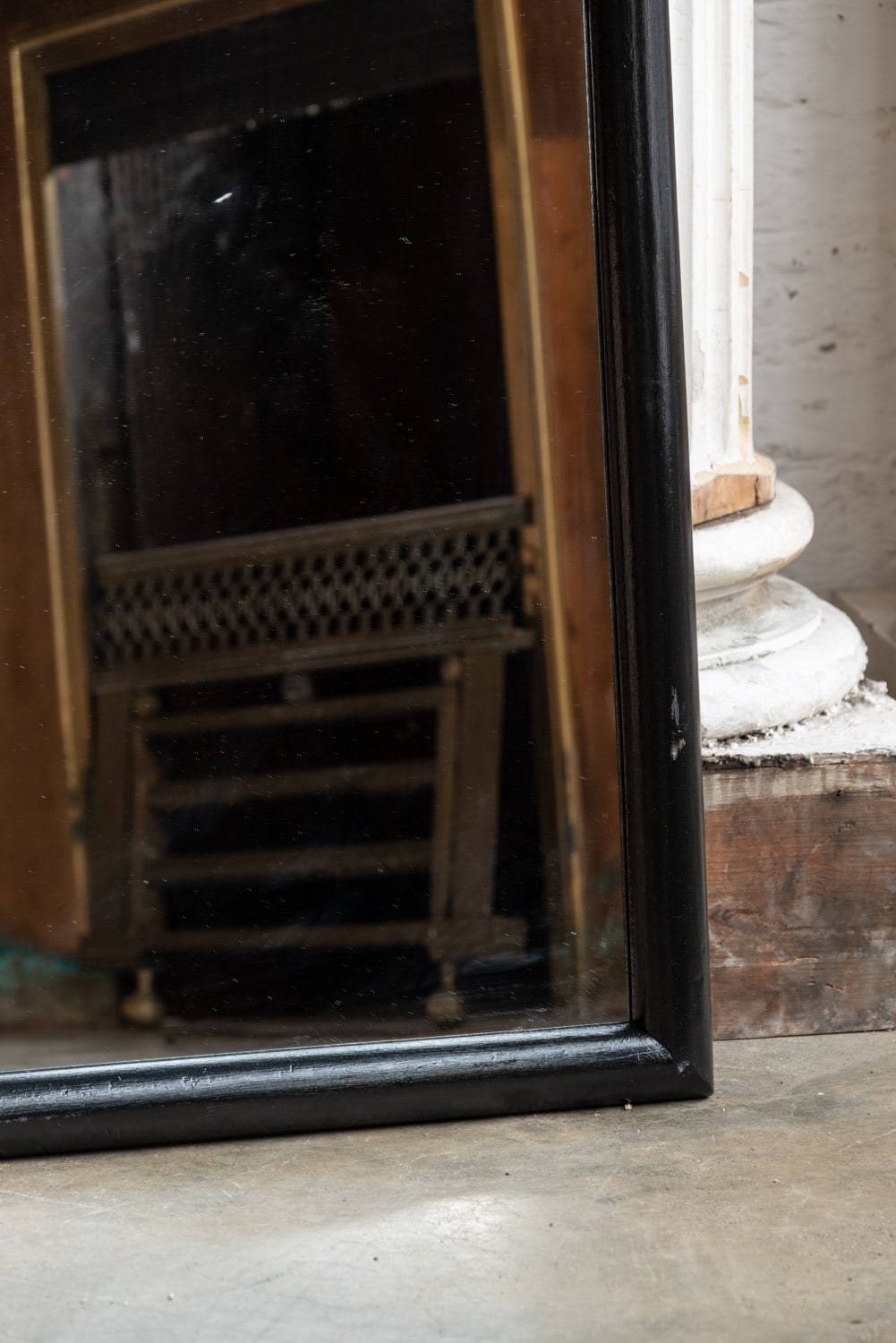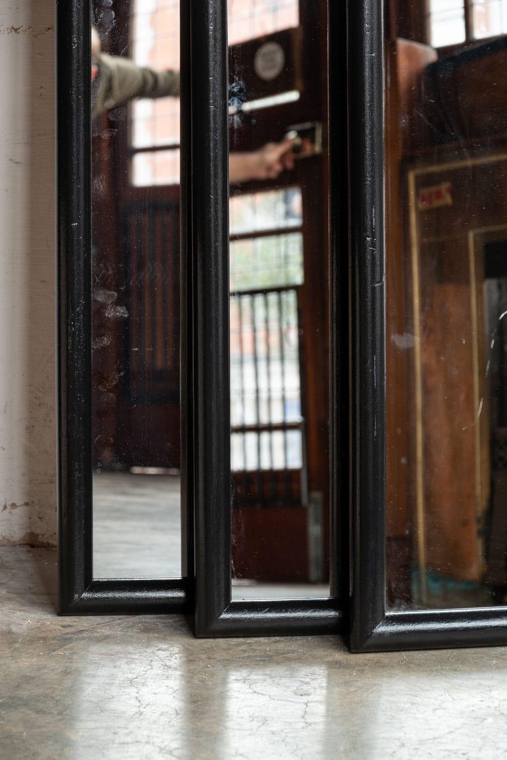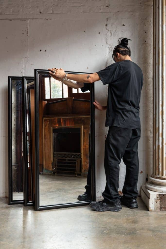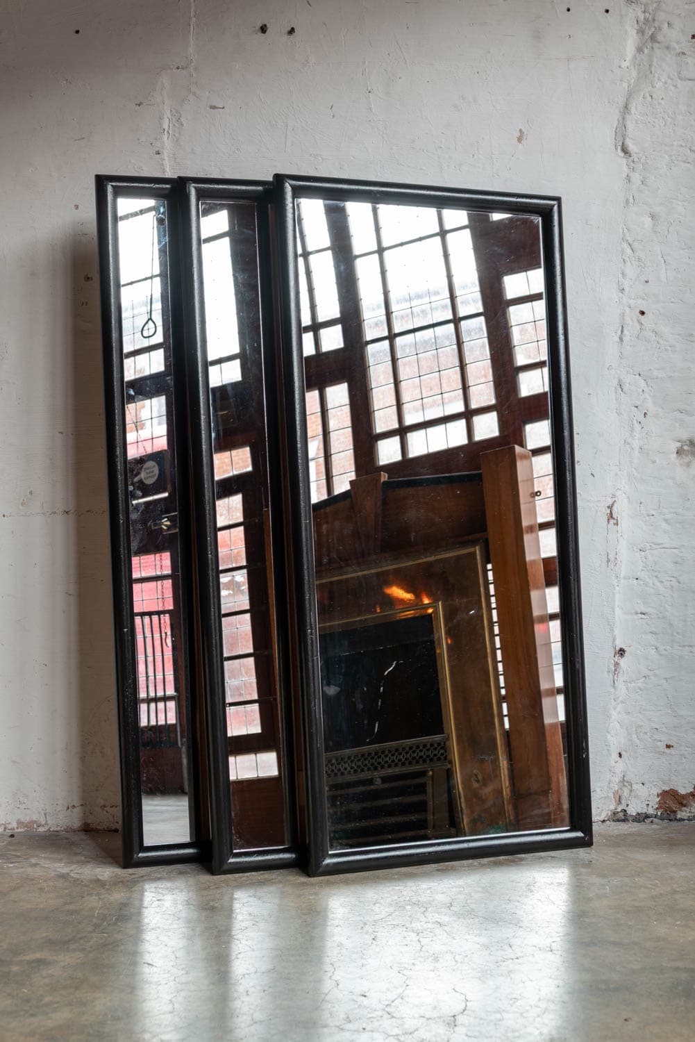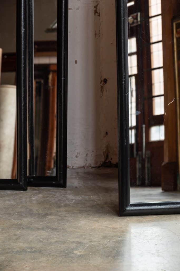 Dressing mirrors with black-painted frame, made from reclaimed mahogany handrail.