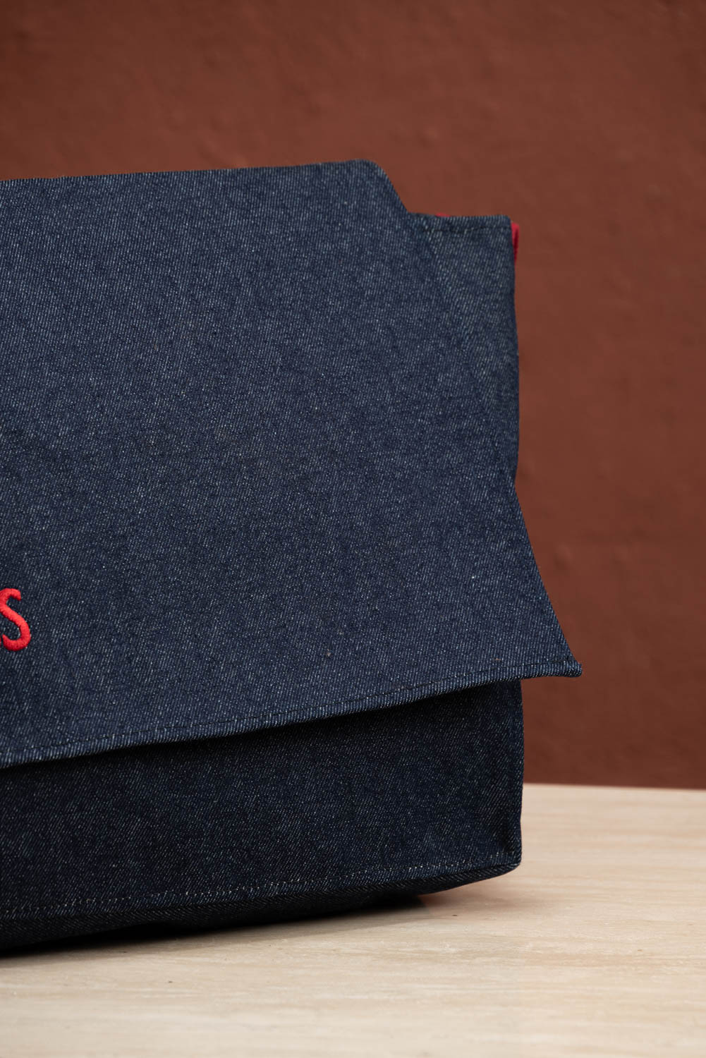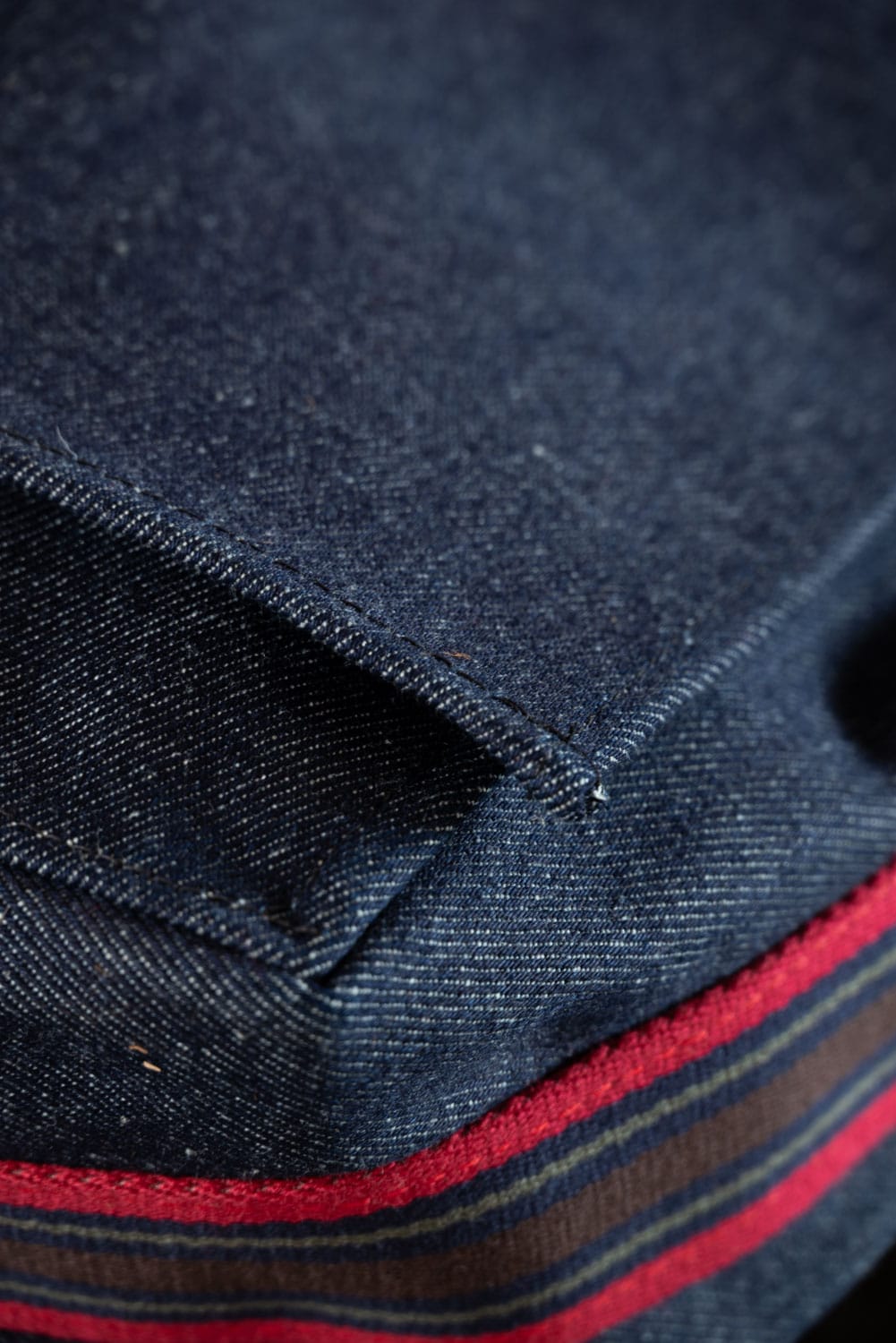 The denim is reinforced firebacked fabric, salvaged from factory dead stock.