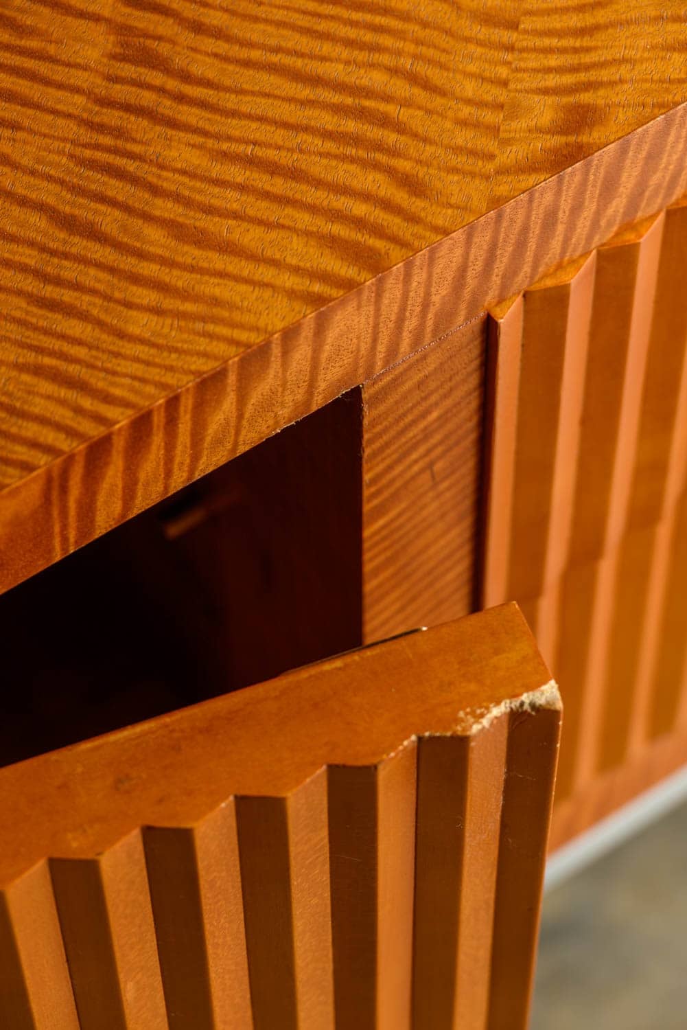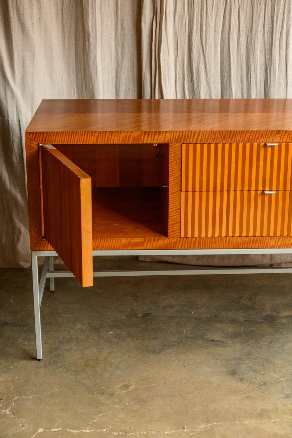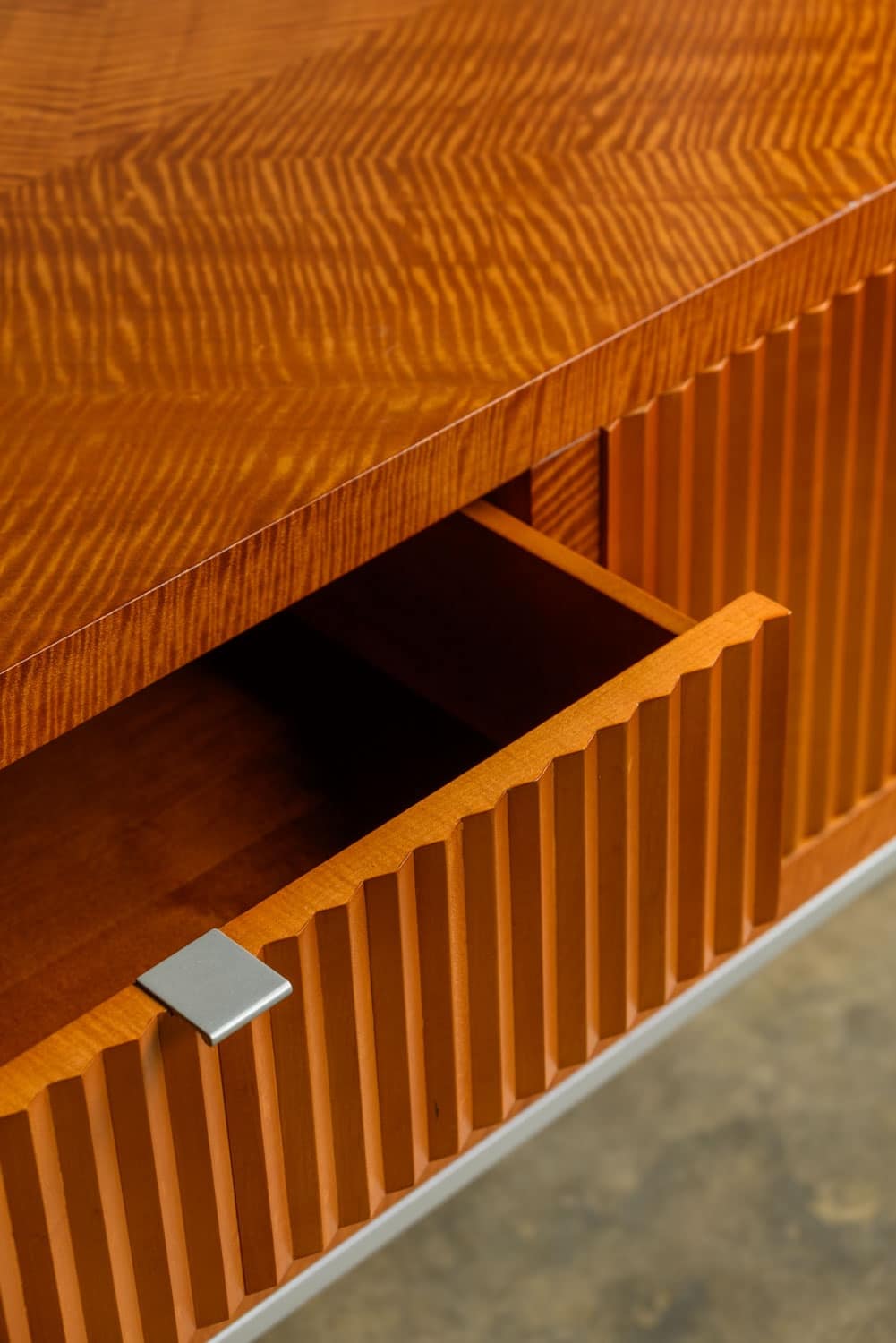 An impressive sideboard with cherrywood verneer construction and zig-zag fluted front, by Bolier & Co.