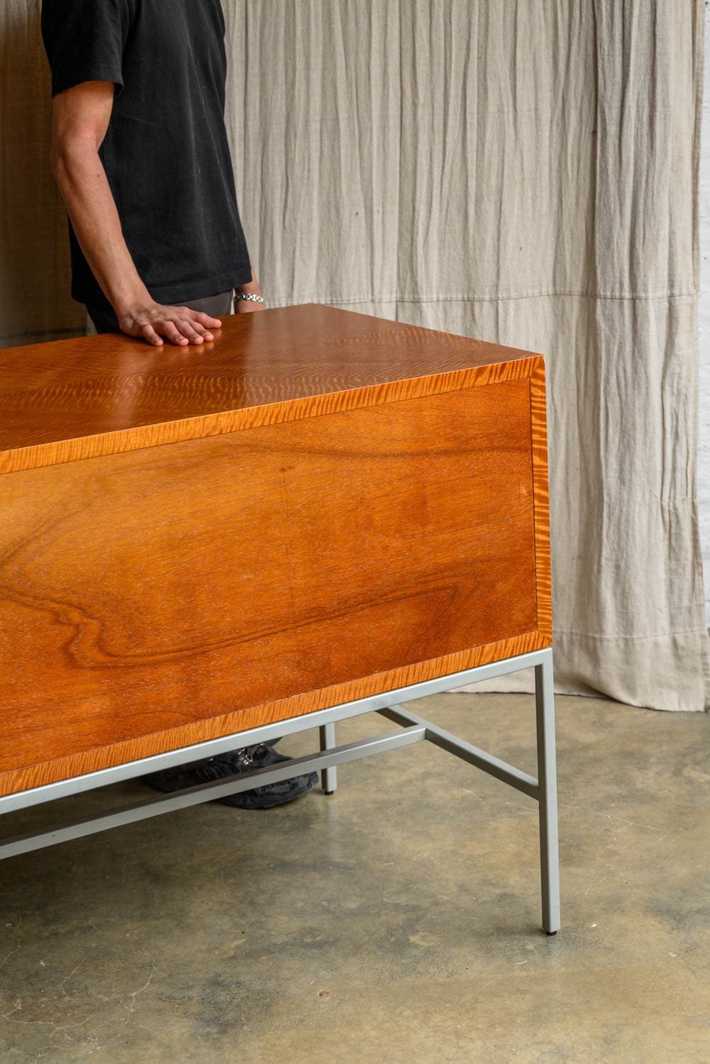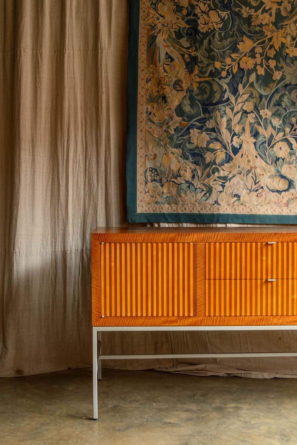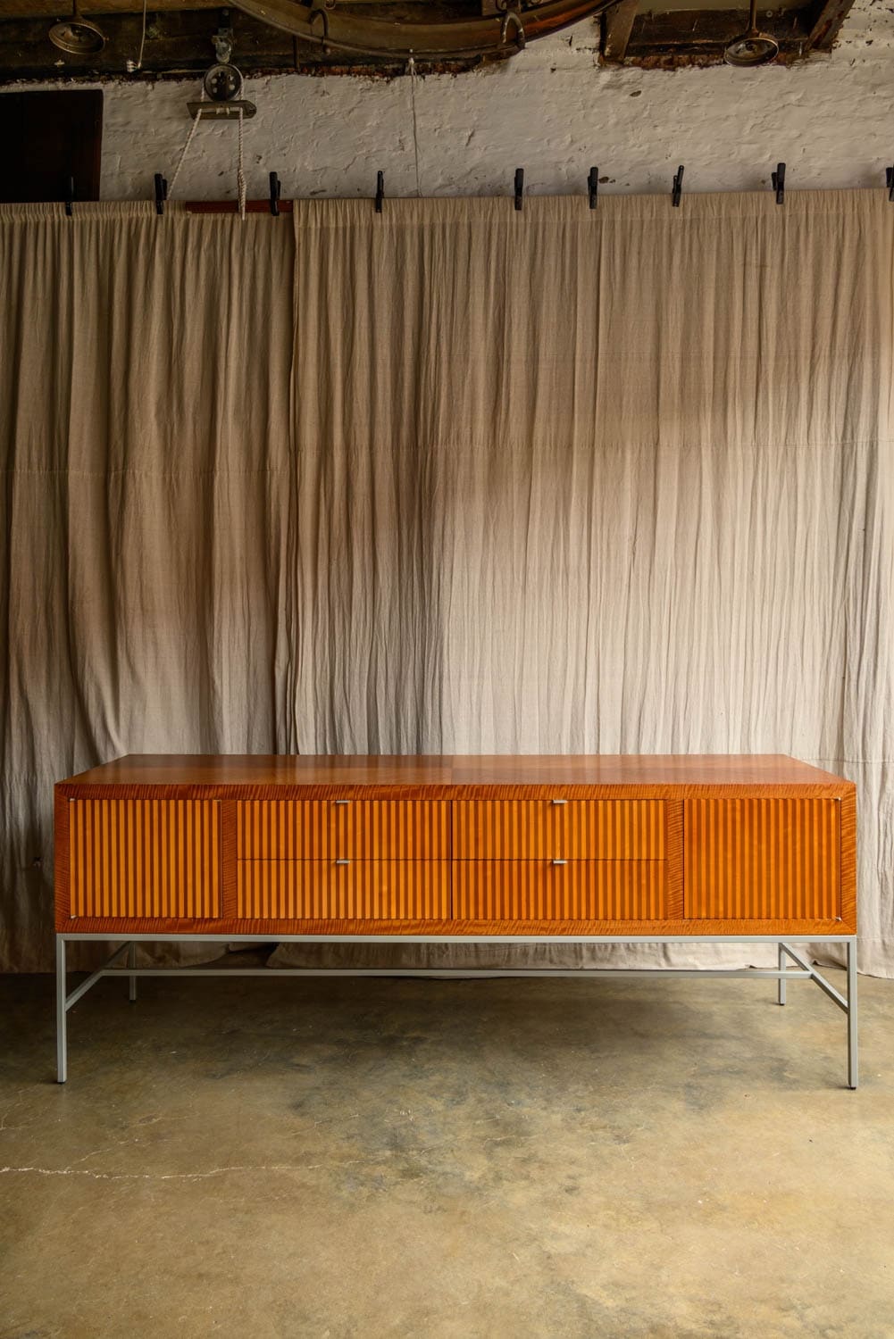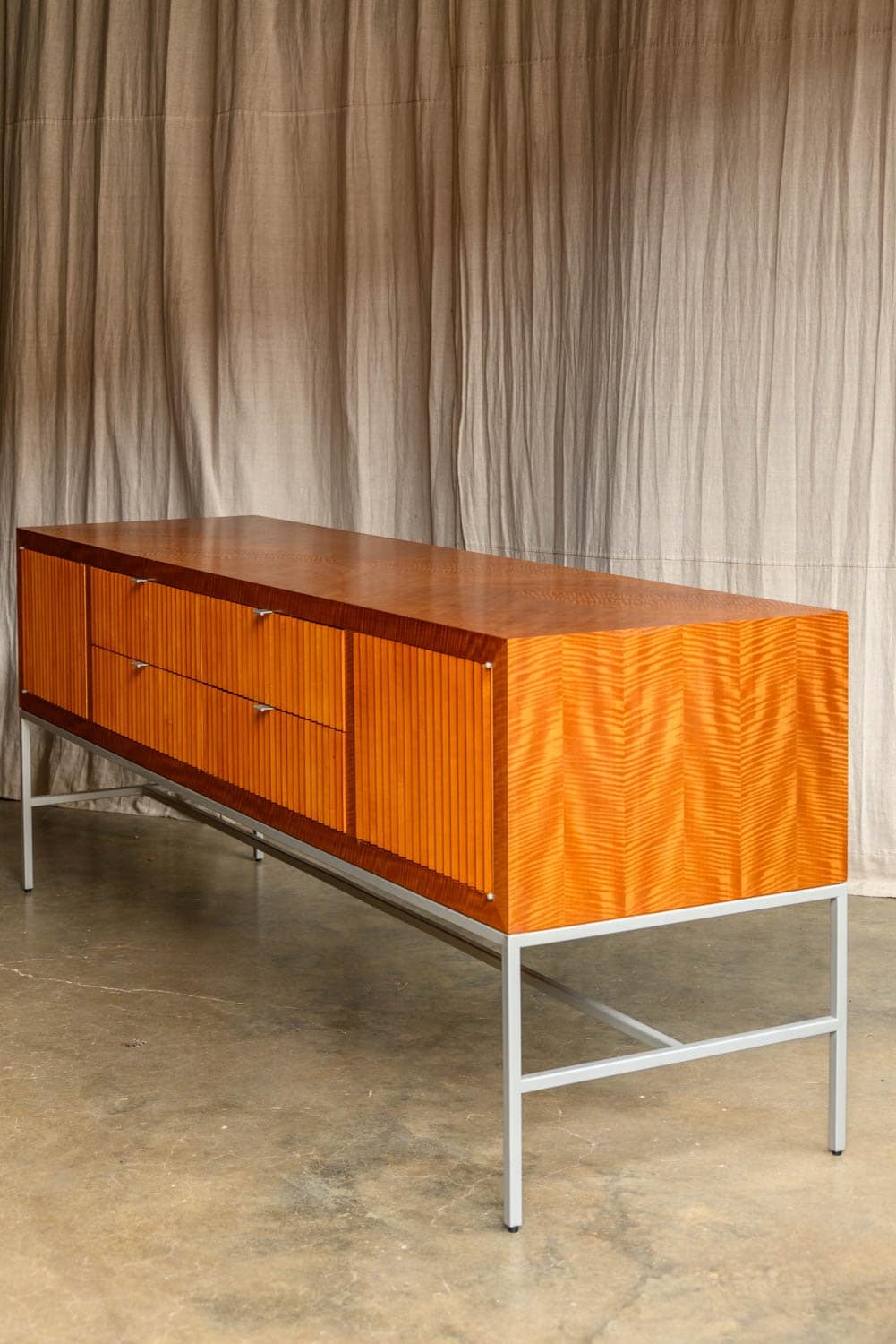 An impressive sideboard with cherrywood verneer construction and zig-zag fluted front, by Bolier & Co.