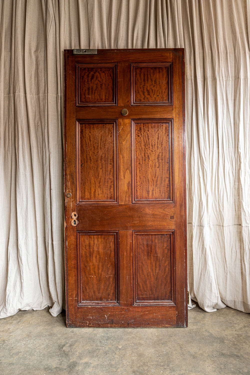 A six-panel mahogany door.This solid reclaimed door has been stripped of varnish and mouldings on one side.Dimensions: H 2180, W 950, Th 45