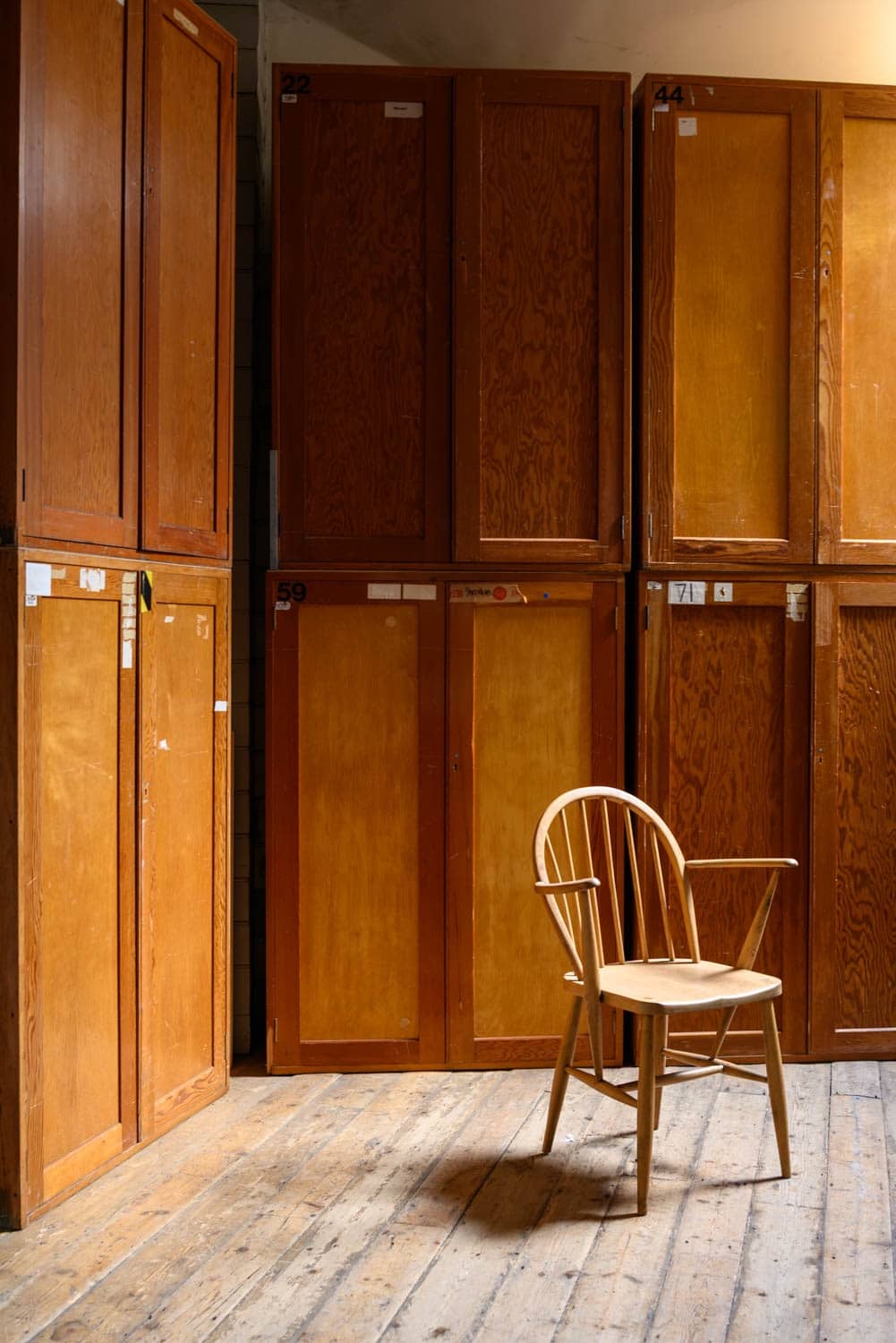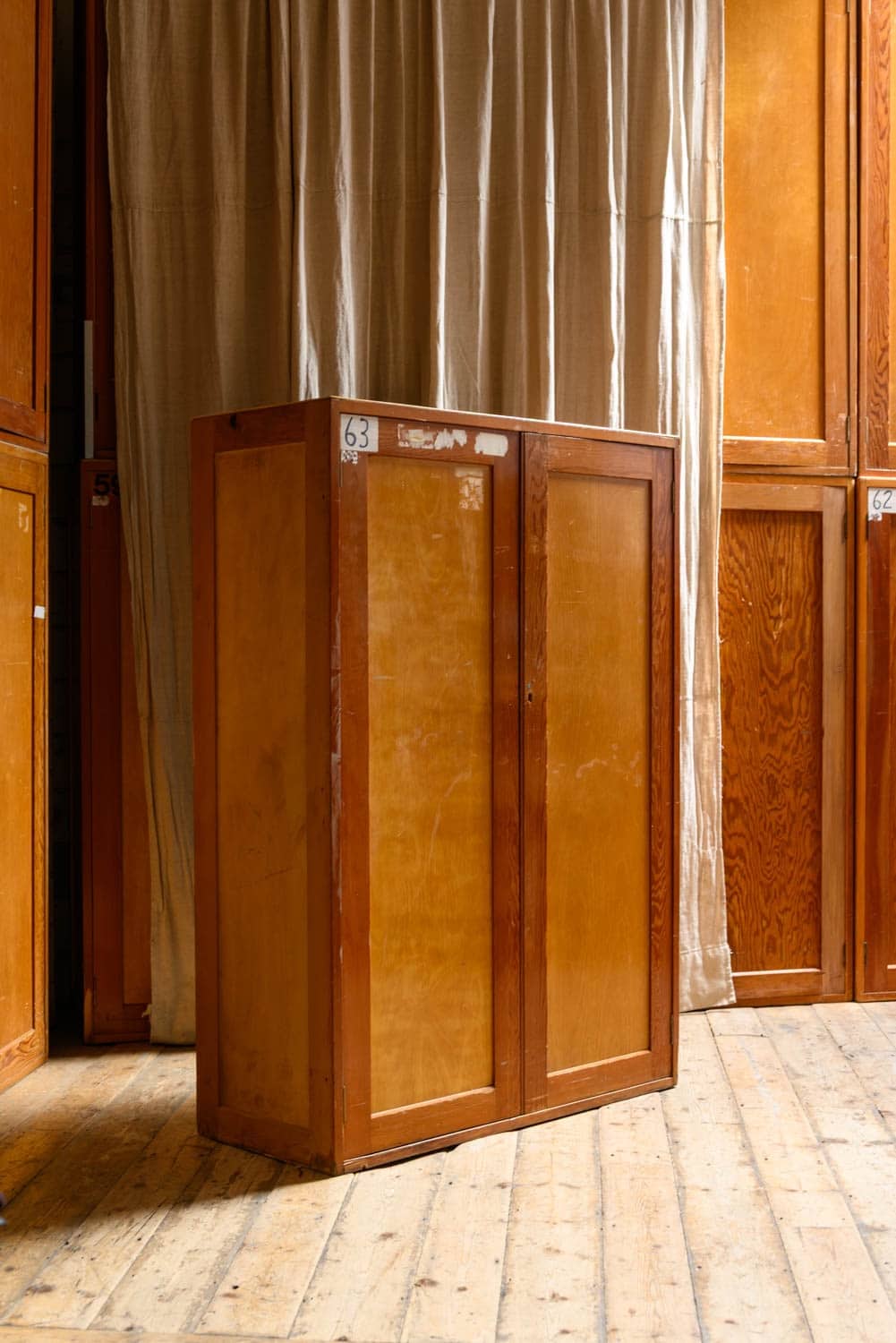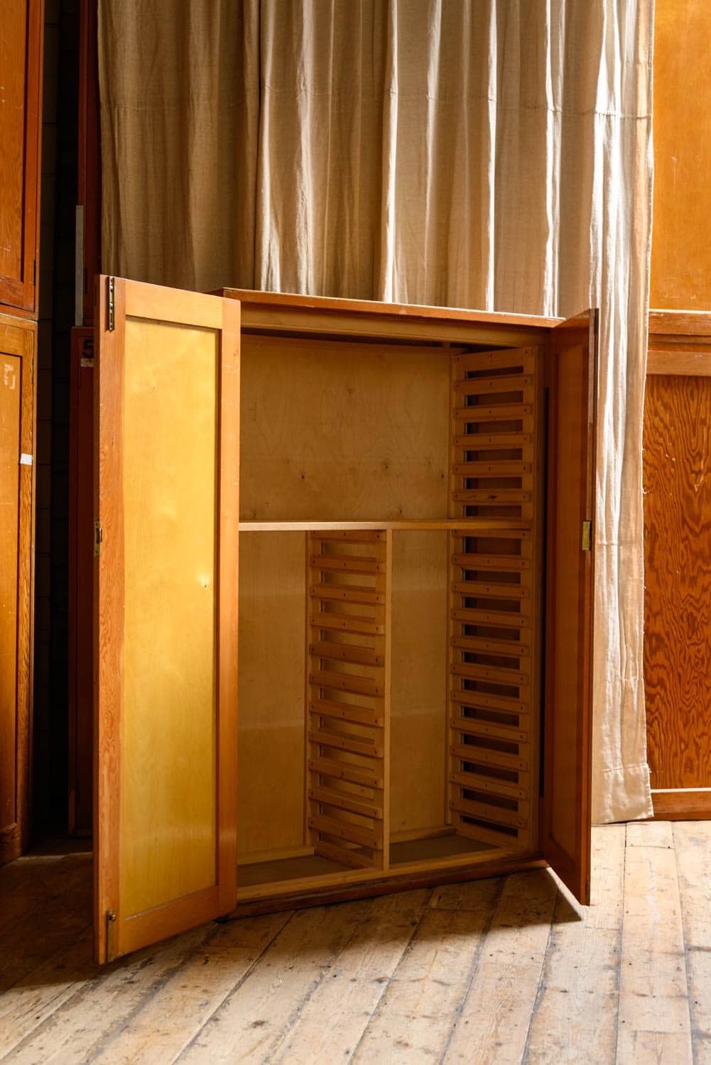 Midcentury museum cabinets salvaged from a prominent London institution.